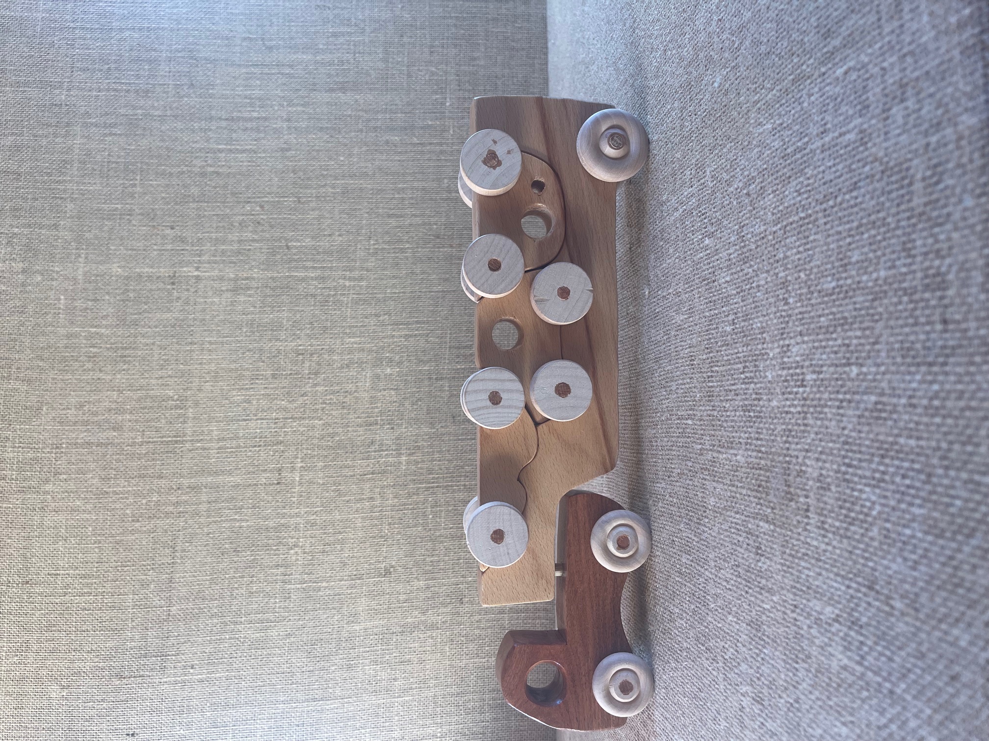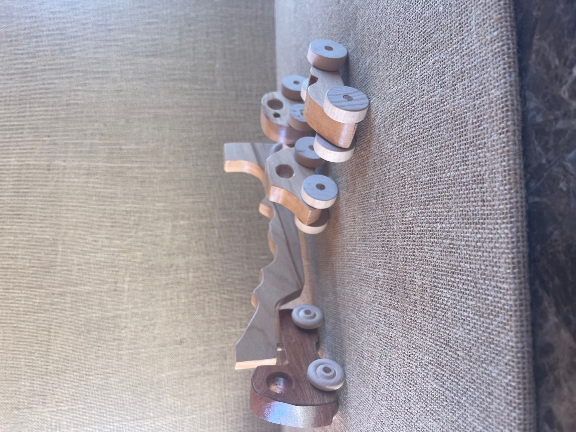 Handcrafted wood puzzle model featuring , Mesquite, t, Beech, woods.
