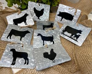 Farm Animals Galvanized Ornaments - Cow, Steer, Heifer, Cow &...