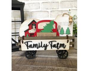 Family Farm Christmas Interchangeable Shelf Sitter, Wood Wago...