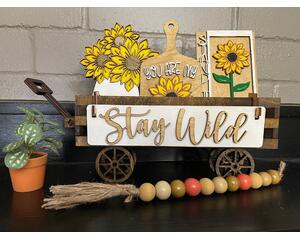 Stay Wild Sunflower Interchangeable Shelf Sitter, Wood Wagon,...