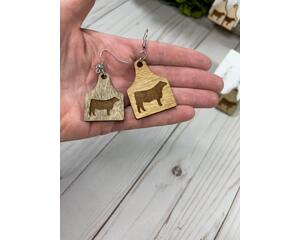 Ear Tag Earring with Engraved Steer, Livestock Tag Earring, W...