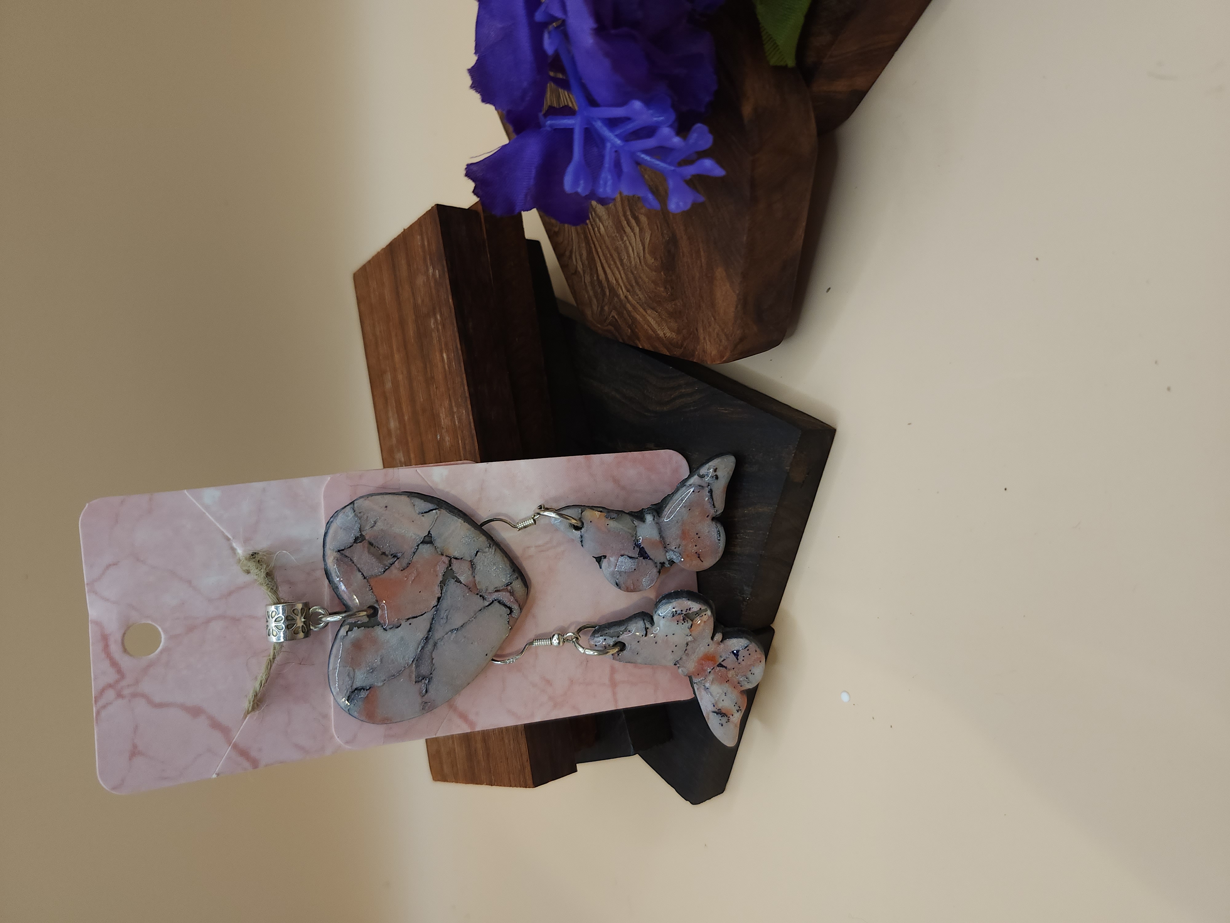 Rose Quartz Heart and Butterfly set