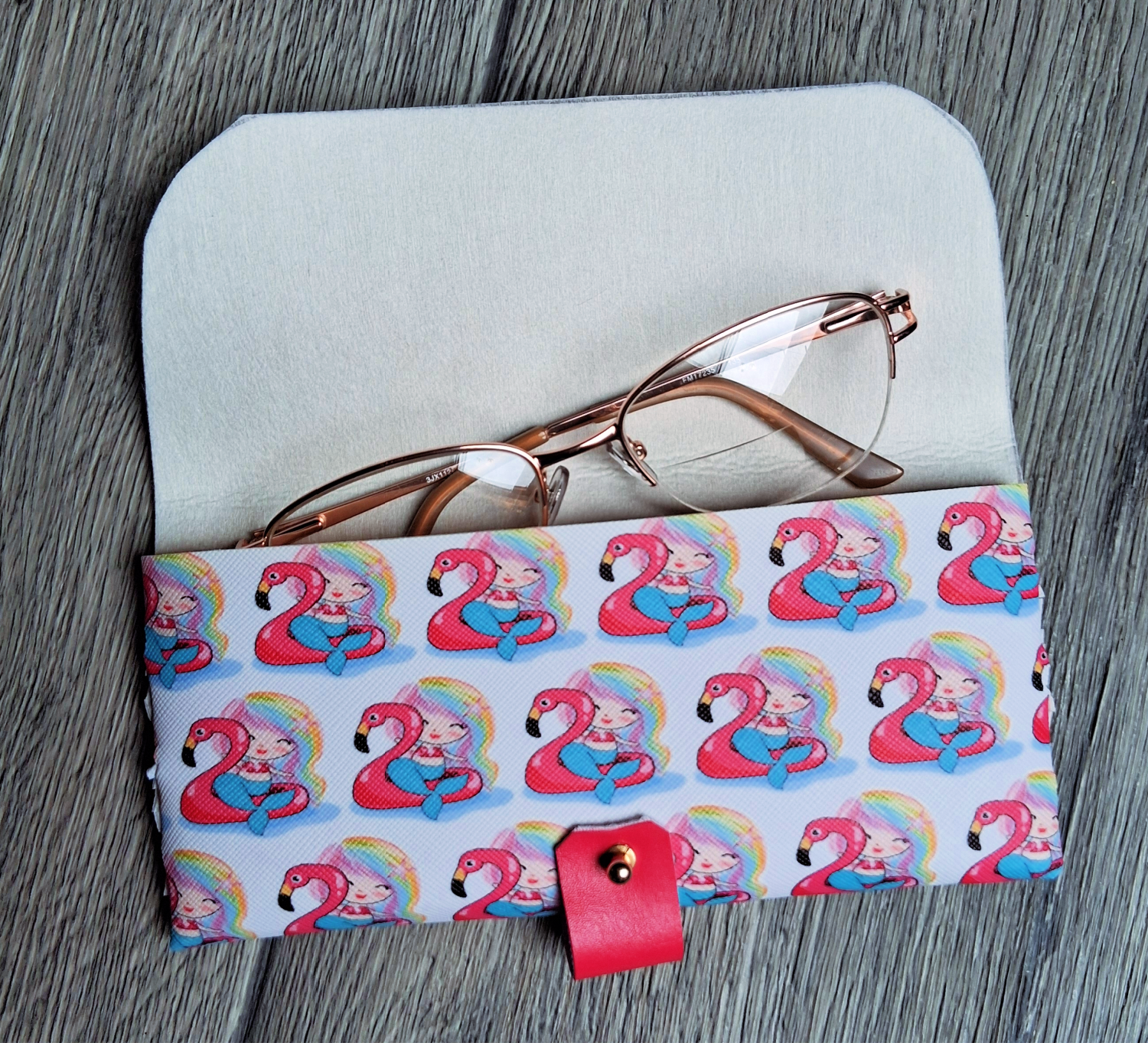 This handy case is made from printed vinyl and will keep your specs safe from damage. Opens and closes easily with a stud rivet. Case measures 3"x6 1/2" when closed.