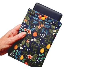 Five colorful, floral Kindle Sleeves to hold and protect Kindles. Made with Rifle Paper Co. fabric.