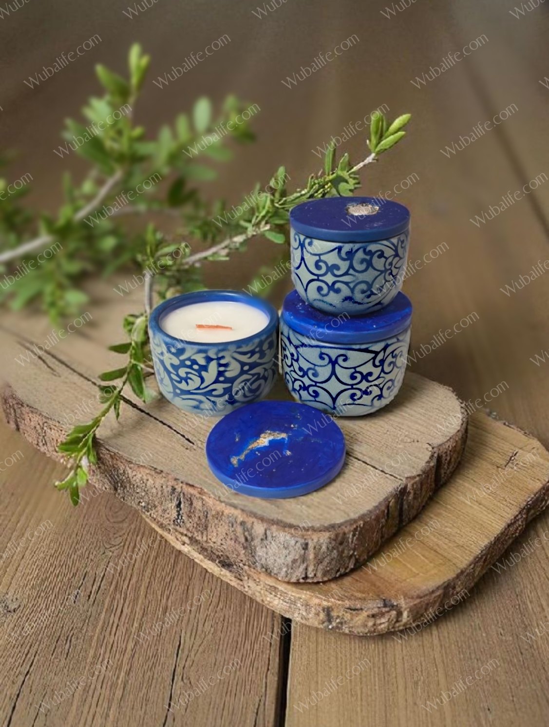 A coconut/apricot wax filled in a reusable concrete vessel.