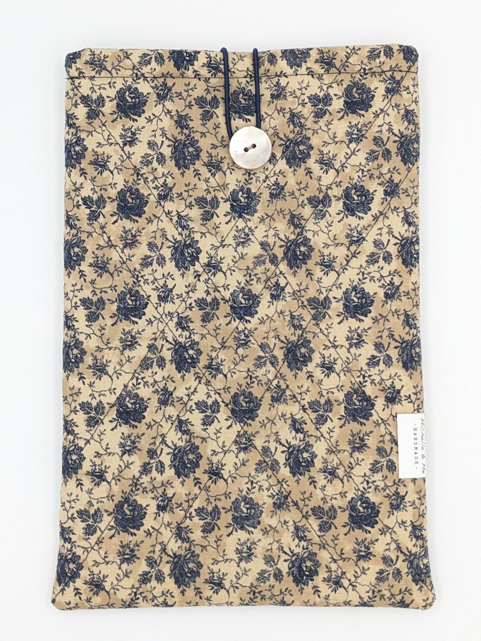 Quilted Small Book Sleeve in Tea-Stained Navy Floral Cotton