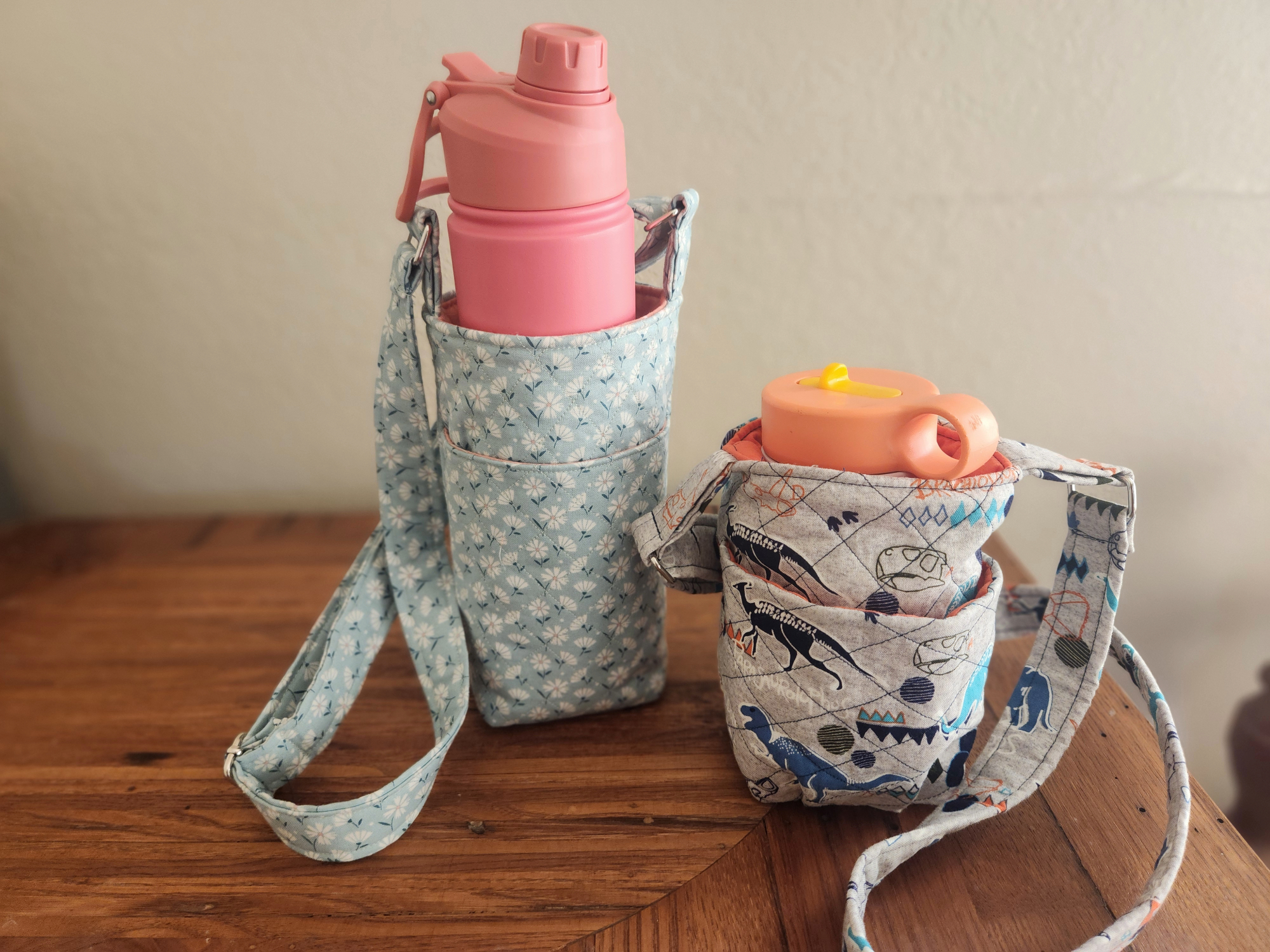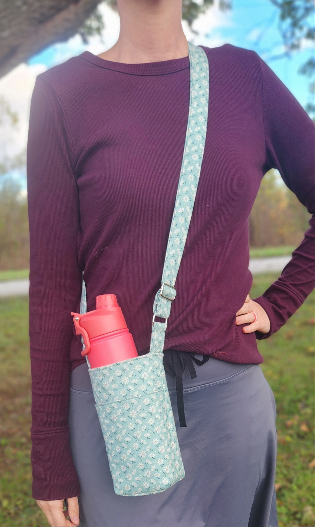 Handmade Water Bottle Holders with a pocket. Stay organized and hydrated on the go — all at once! Carry your water in comfort and style!