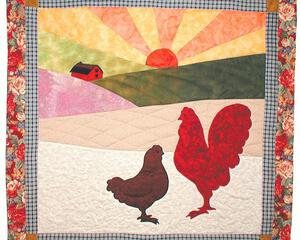 Farm Decor - Chicken and Rooster Wall Quilt - "Sunrise" - Dig...