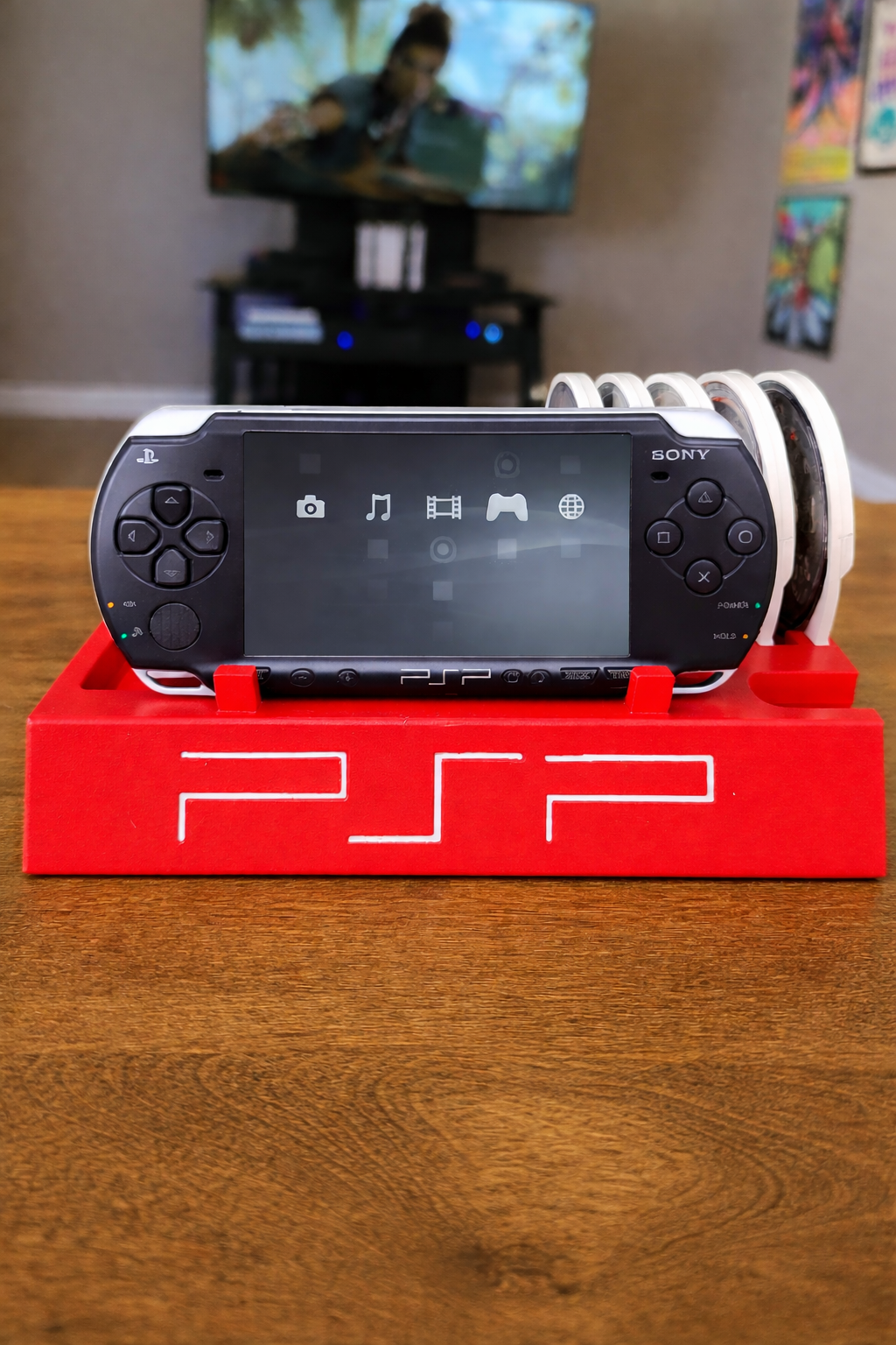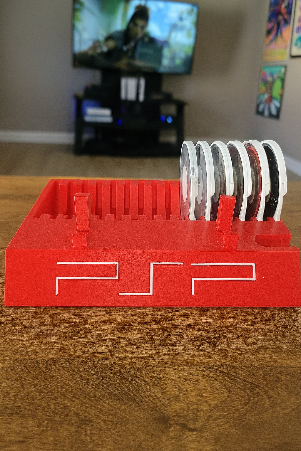 Title: Sony PSP 2000/3000 Display Stand With PSP Game Holder 3D Printed Holds 15 Games- Radiant Red