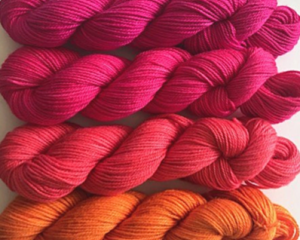 Hand dyed fibers like mine are typically dyed in very small batches and given lots of special attention and handling. Every strand of yarn you'll find in my shop is in the care of my hands for no less than 3 hours. This ensures accurate and even color distribution and absorption, complete rinsing of excess dye and elimination of salt residue, and the time needed to beautifully wind, measure for length, and weigh every skein of yarn prior to packaging and shipping. You won't find any surprises like knots or splicing in my yarns, only beautiful color and predictable quality and softness.