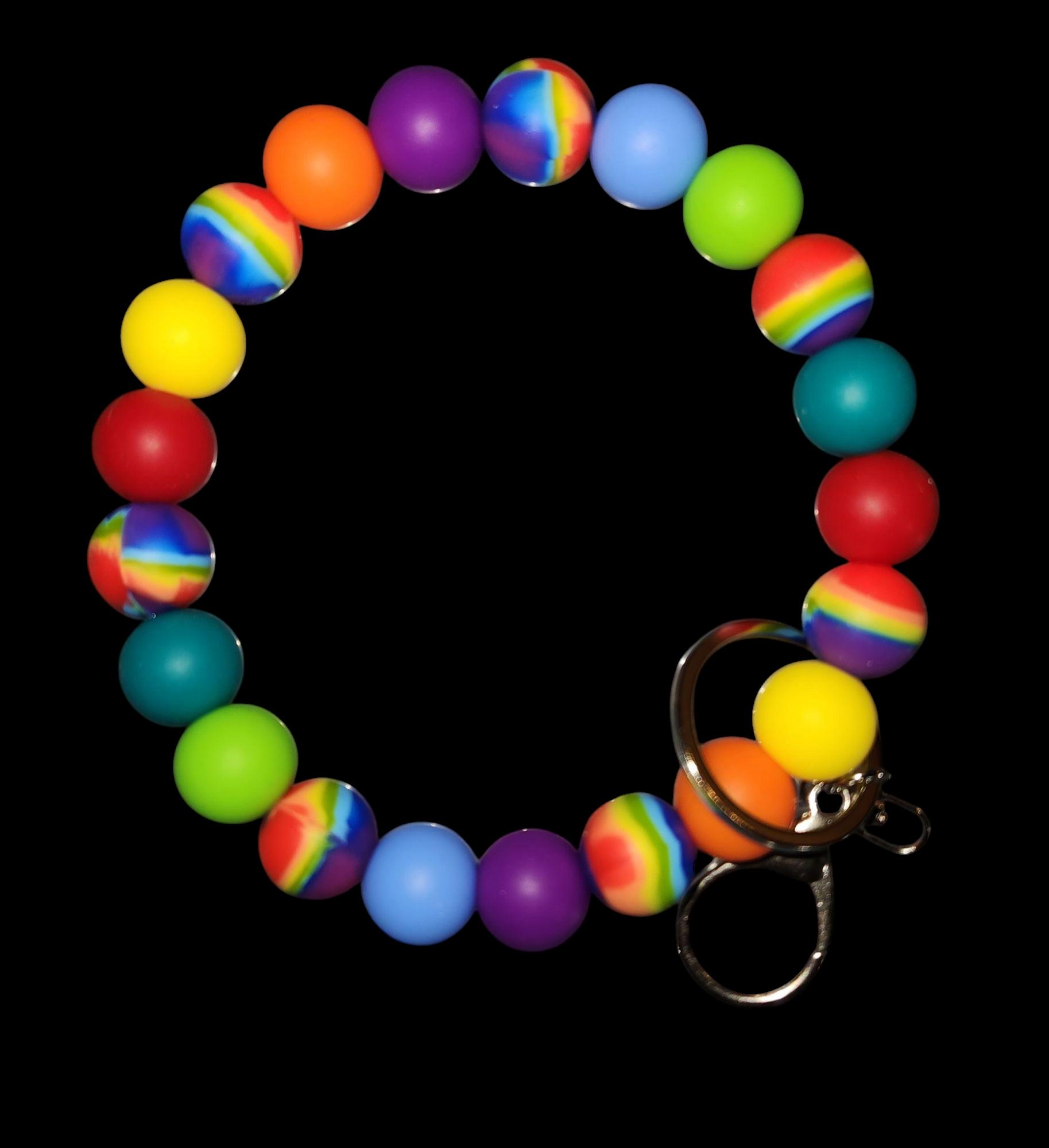 Easily locate your keys with this colorful rainbow inspired keychain wristlet.