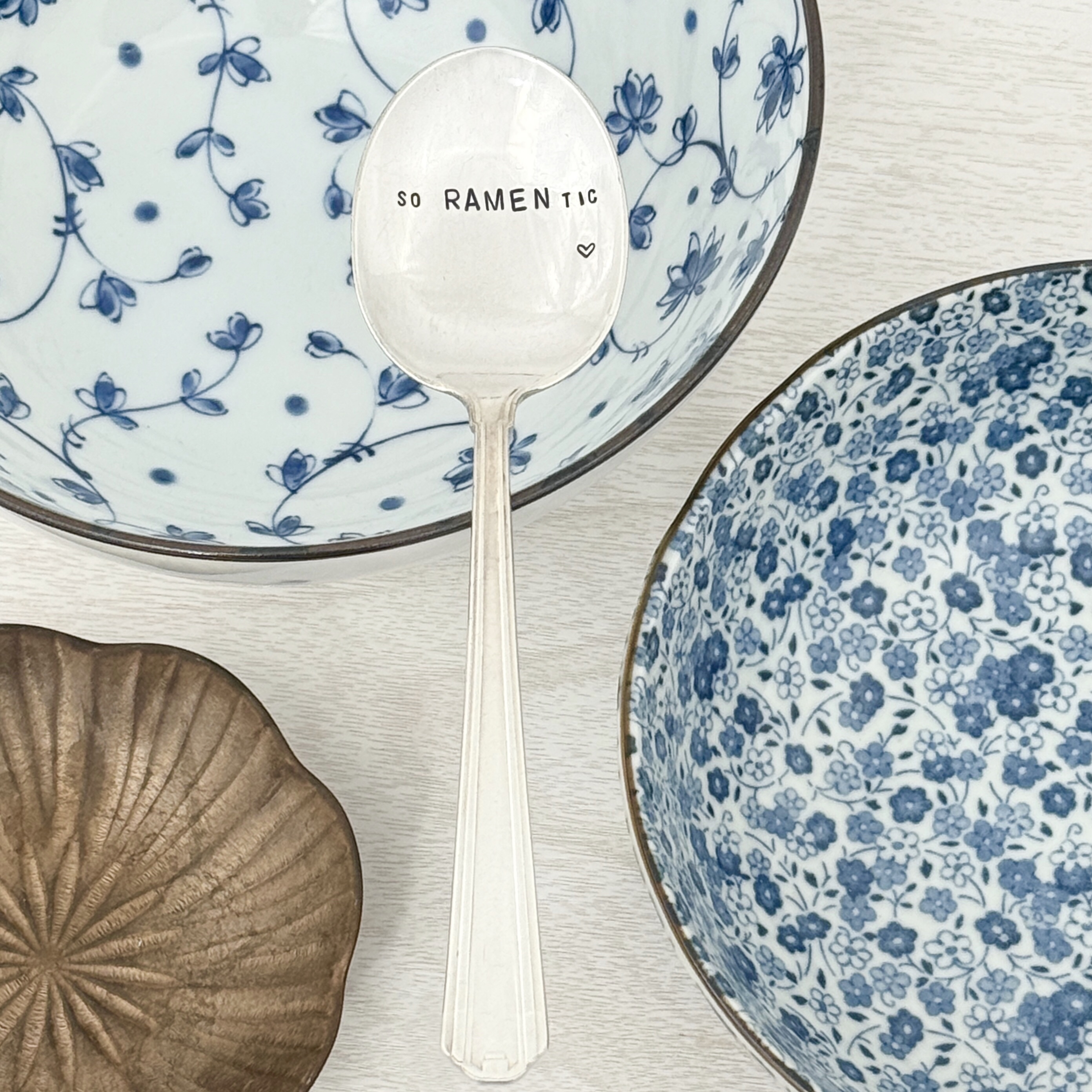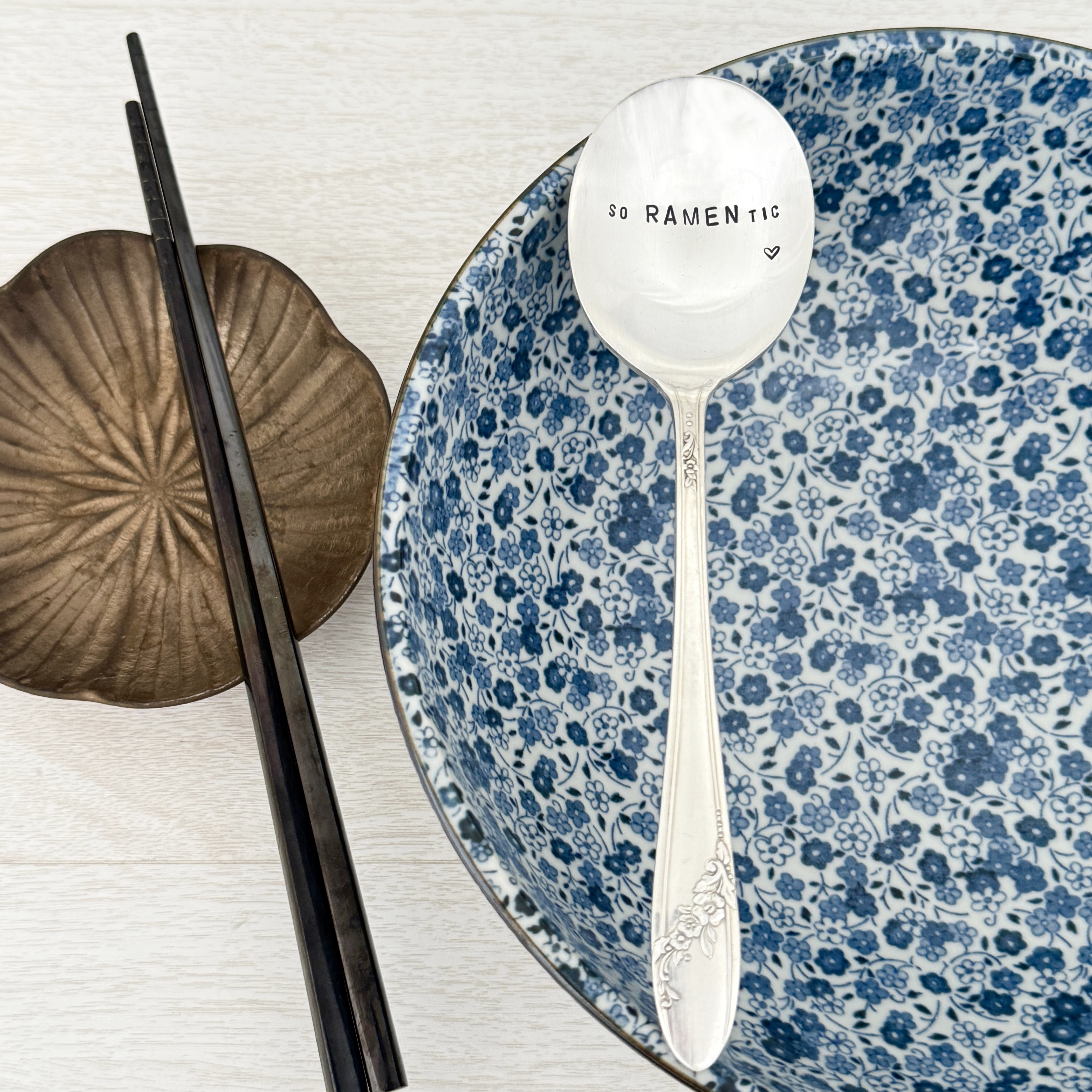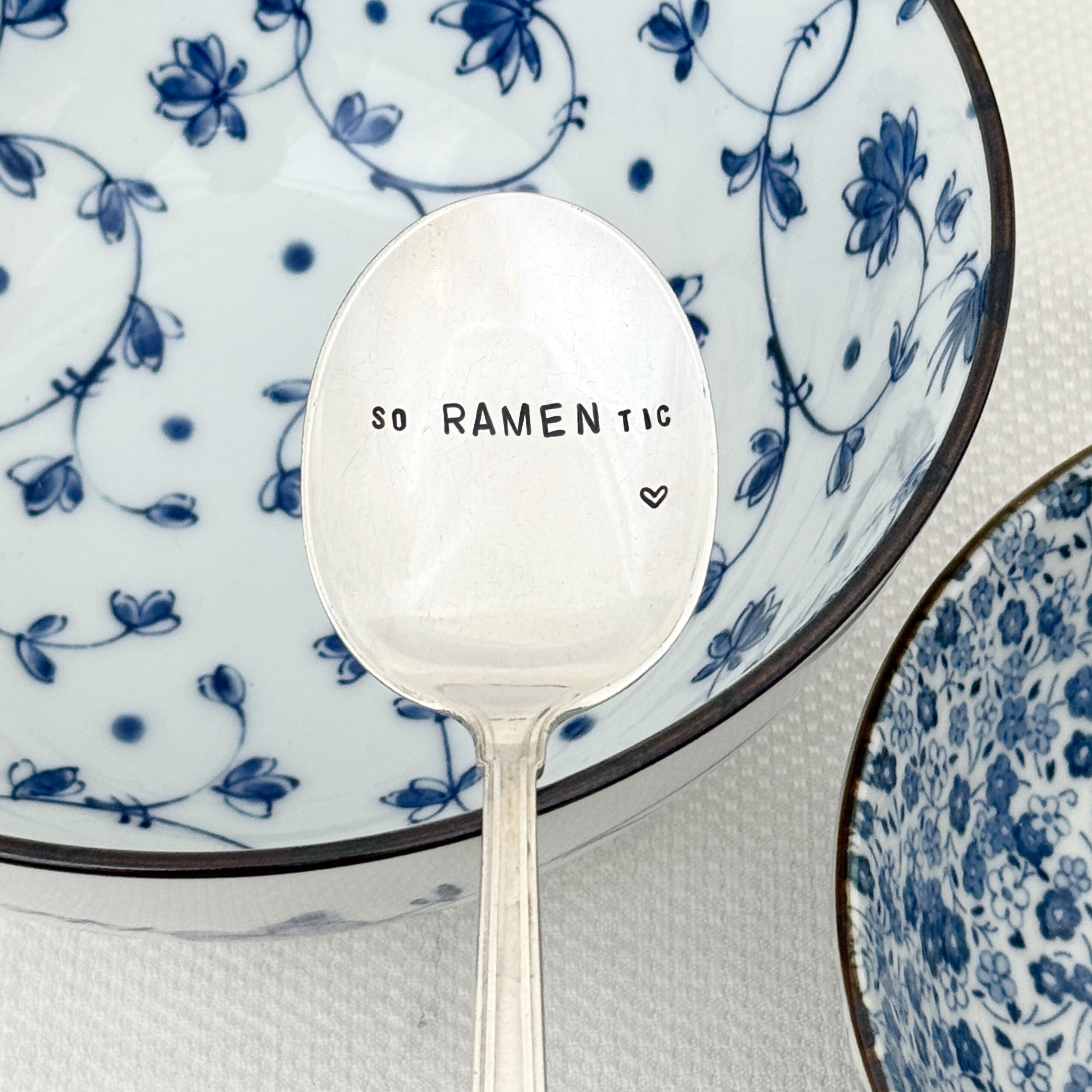 Ramen noodle spoon for your next Ramen-tic date night ❤️. Whether it be a fancy date night out at the local restaurant or a sweet night in with takeout, movies, and a big snuggly blanket - this keepsake vintage spoon is the perfect addition.
