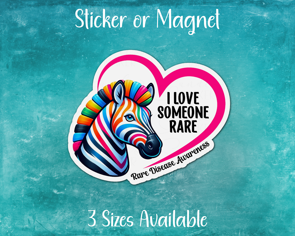 Rare Disease Awareness Zebra Sticker or Magnet | I Love Someone Rare