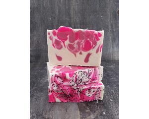 This soap started as a raspberry sangria scented soap... then it got grated up into bits and combined with a new scent with crisp citrus to create a heavenly fruity blend!