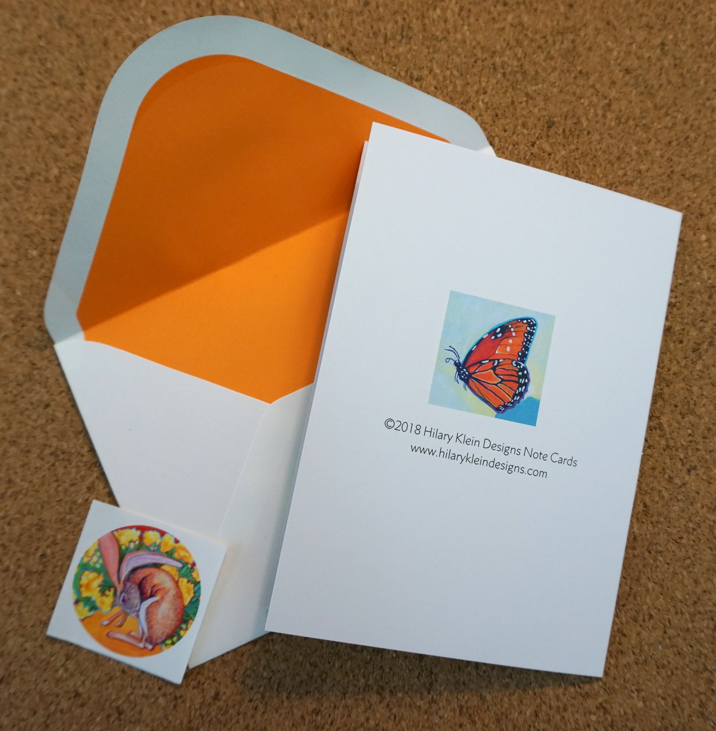 The card is blank inside and perfect for an animal lover's birthdays, thank yous, hellos or congratulations. Each card comes with a random sticker from the paintings to do with as you please. Sustainably sourced 16pt paper Satin finish for vibrant colors Uncoated inside for writing on Envelope: The inside of the envelope is a beautiful orange, adding to the color glow. Inside: Blank Size: A6 - 10.5 x 14.8cm (4" x 5.8") Colors may vary slightly due to screen differences.