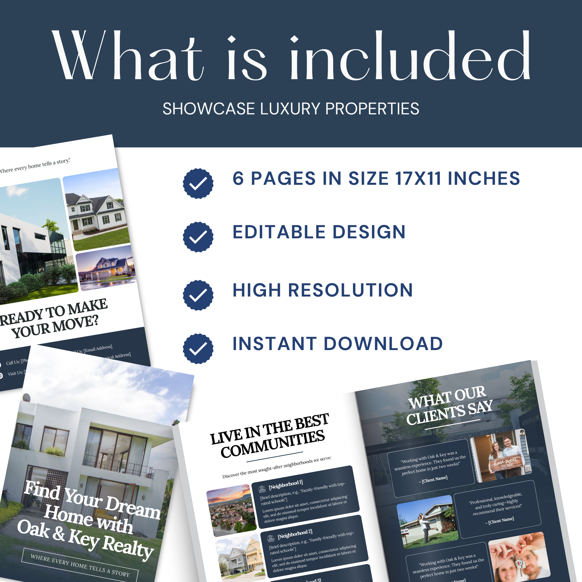 Ideal for Multiple Uses: Use as a marketing flyer, open house brochure, luxury listing flyer, or comprehensive property brochure.