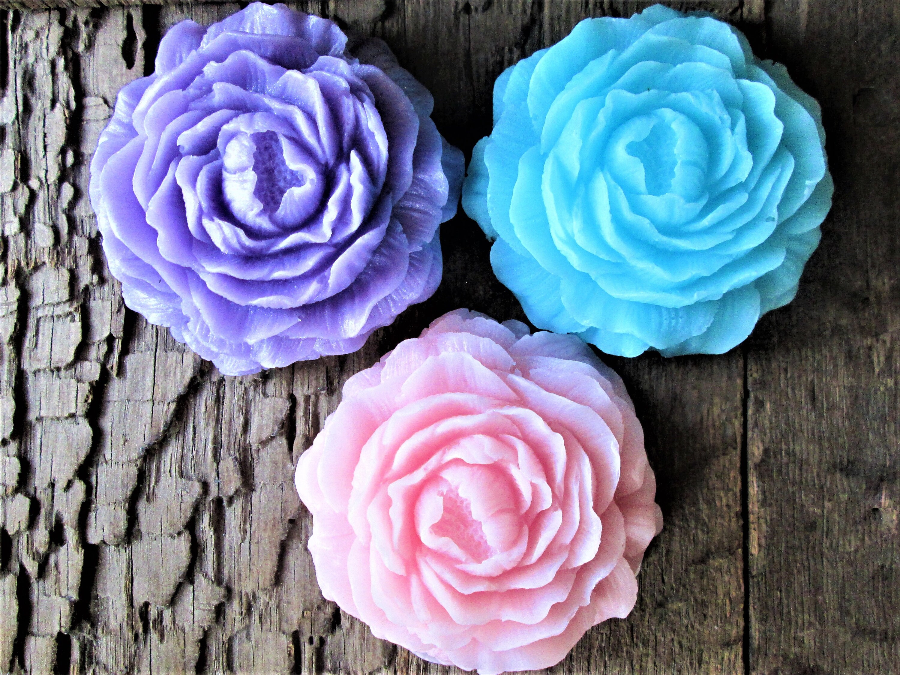 These elegant floral soaps make wonderful party favors, spa gifts, or thoughtful handcrafted presents. Custom orders are always welcome. Please contact me for fragrance options, color requests, or larger quantities.