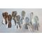 7-8 plastic shopping bags (2.25 mils thickness) are woven together for each rope. Handles are made from spent thread cones.