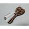 Rope colors are primarily shades of grey and brown; handles are primarily grey or white. The weave pattern, color proportions, and handle color of the jump rope you receive may vary, as each item is unique and depends on the materials I have available when weaving a new rope.