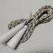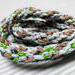 These jump ropes were made using a custom-made, oversized kumihimo disk with long strips of plastic bags. Each jump rope diverts 7-8 thick plastic bags from the landfill.