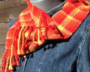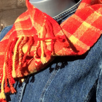 Handwoven lightweight six-foot long scarf woven in 100% wool yarns.