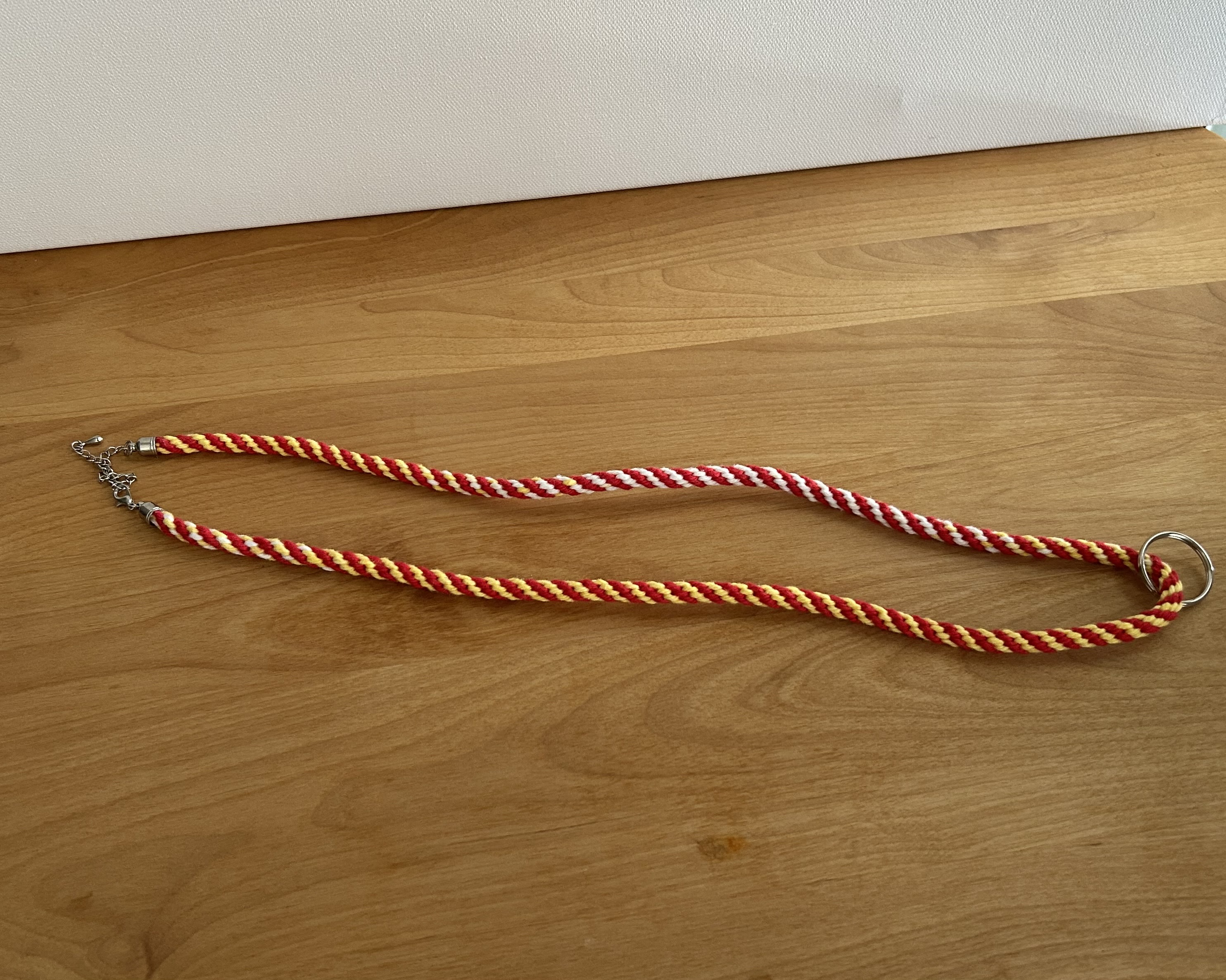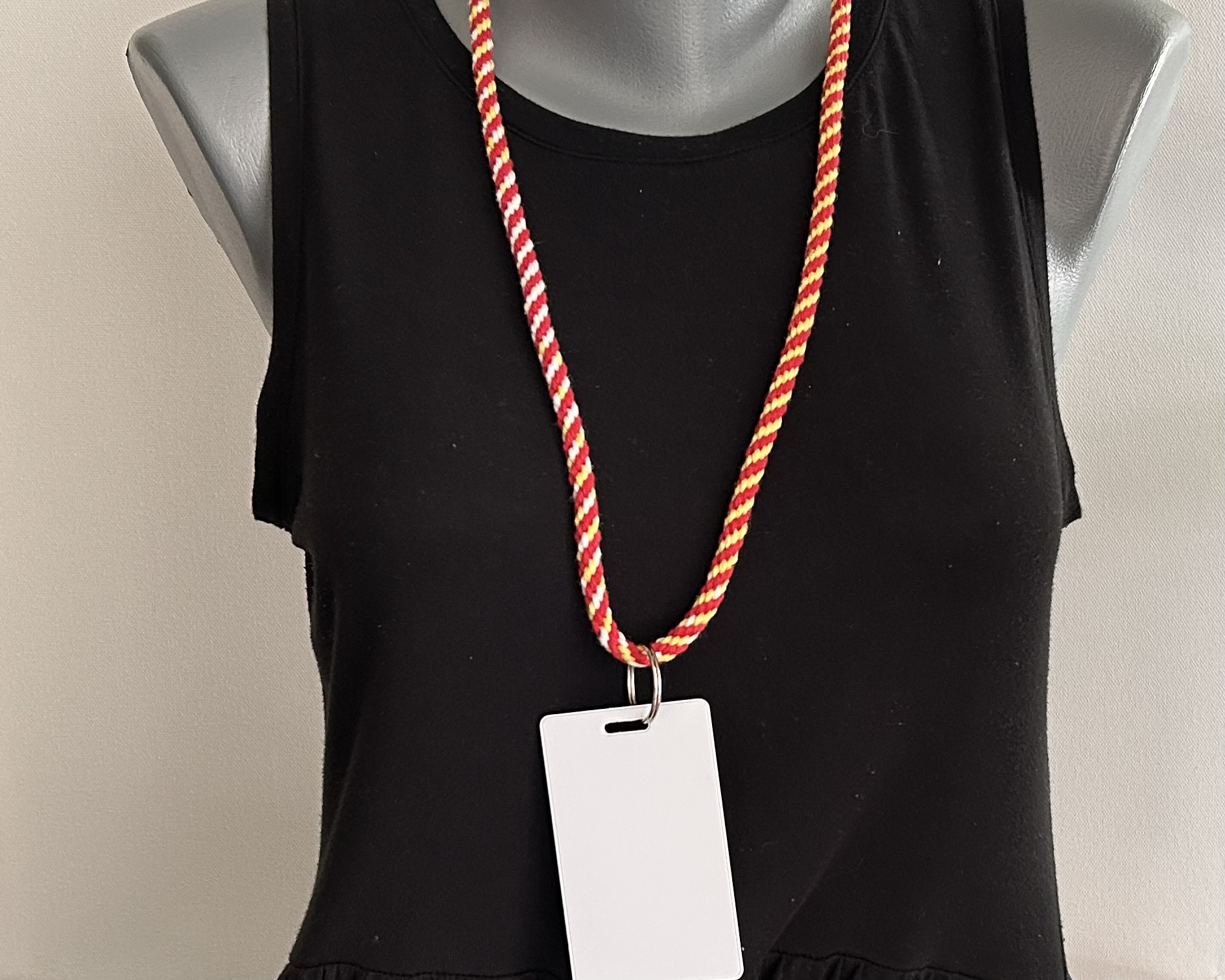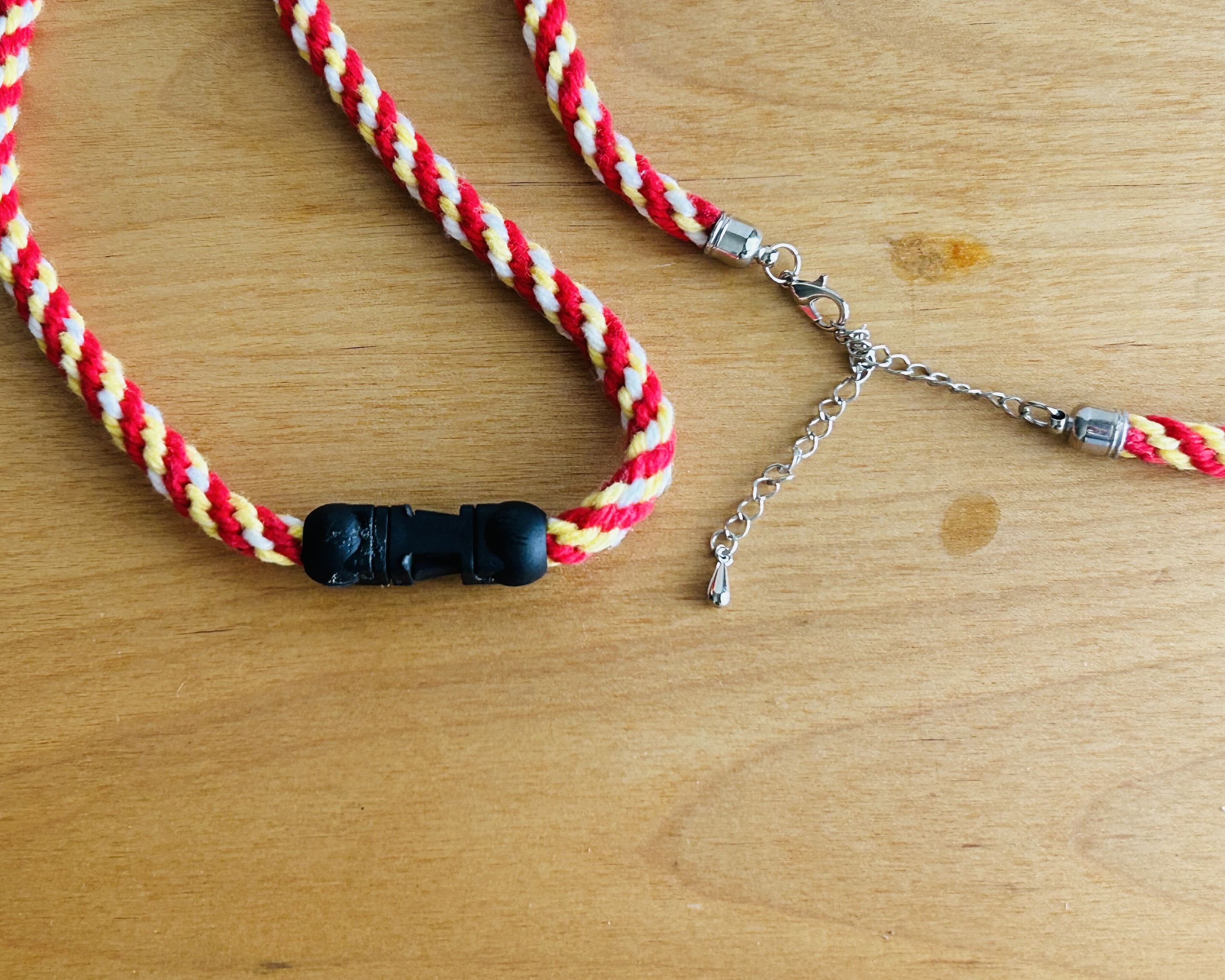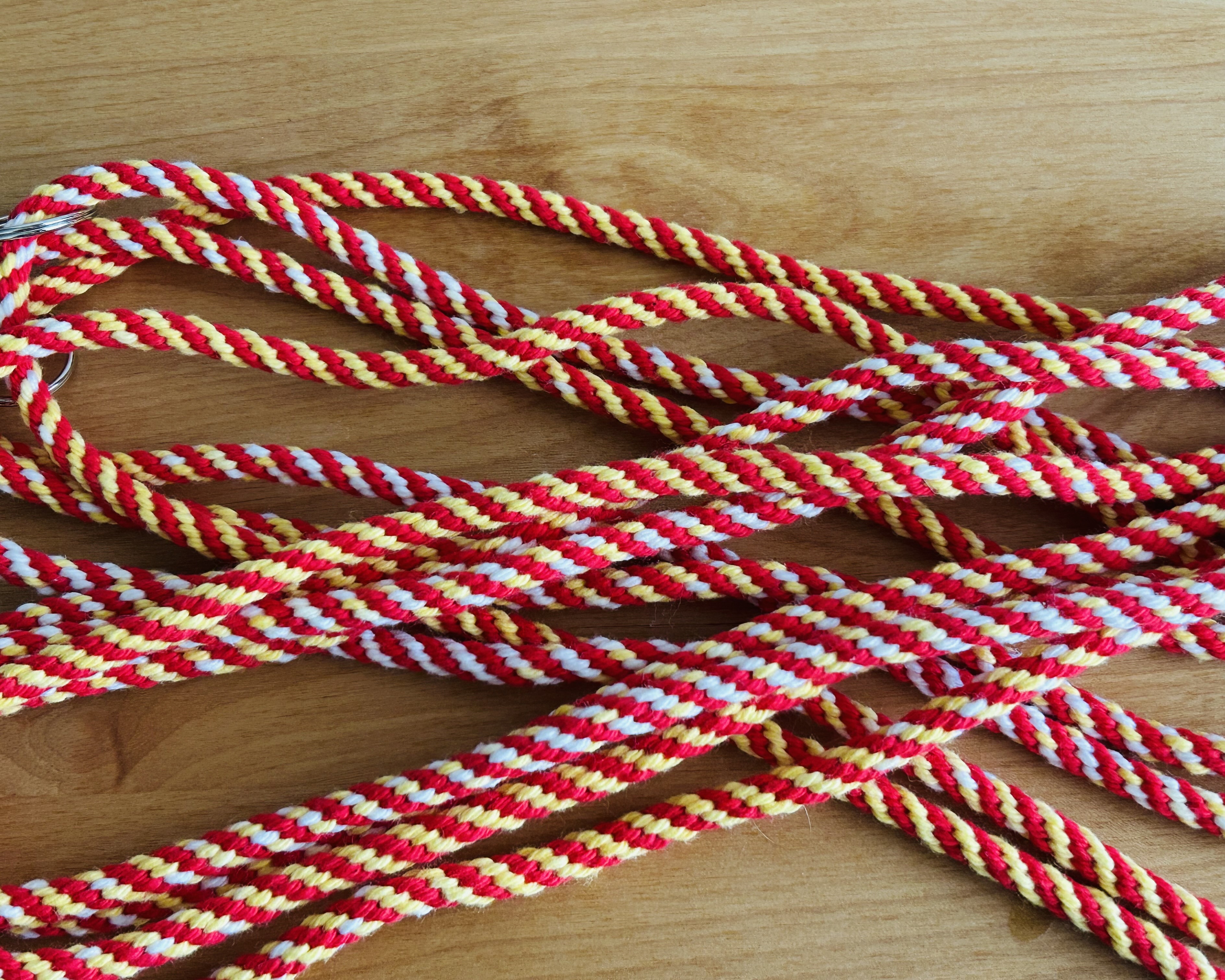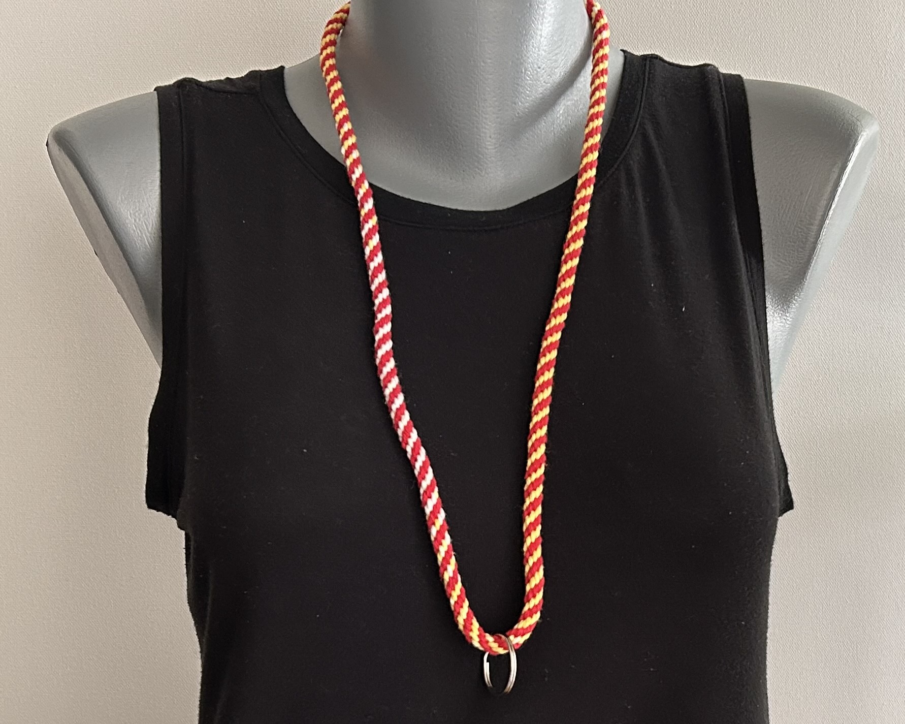 Declare your loyalty, Friday or any other day of the week, with one of these Kumihimo woven lanyards. Kumihimo is a traditional Japanese technique of creating cords, in this use, a colorful, lightweight lanyard that easily supports your ID, key card or just fun tokens of your allegiance to your team or college alma mater.