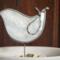 Use a picture hanger, nail, or cup hook for display. Avoid suction cups. When storing, wrap in tissue and padding to protect the piece.