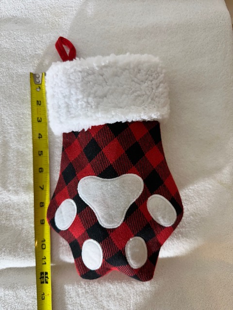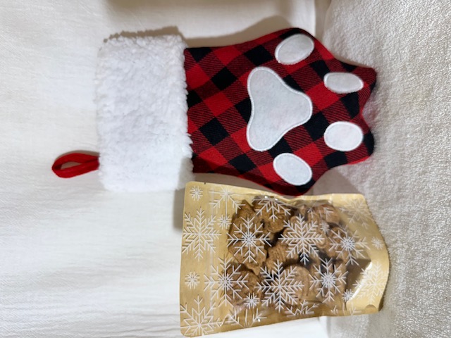 Limited Quantities - Order this Holiday Bundle Now! Kickoff the holidays by hanging your beloved pup's Stocking filled with homemade dog treats! This red and black paw shaped stocking has a hang tag on it and at the longest part is about 12 inches tall. This dog stocking comes with your choice of Homemade Dog Treats! You can select the flavor of treats below.