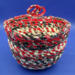 There is no limit to what you can make with fabric rope. It's simply choosing the colors you want to use and finding the best way to combine them, twisting and forming the rope. This basket is approximately 24 yards of fabric rope. The red, cream and black colored scraps provide a unique blend of colors that make a vibrant bowl. Some people call them baskets, other's bowls. For me the two are interchangeable. When I was close to finishing the bowl, I decided that this one could be fun as loops. I even left a little tail on, so you can see what some of the fabric looks like other than as the twisted rope.