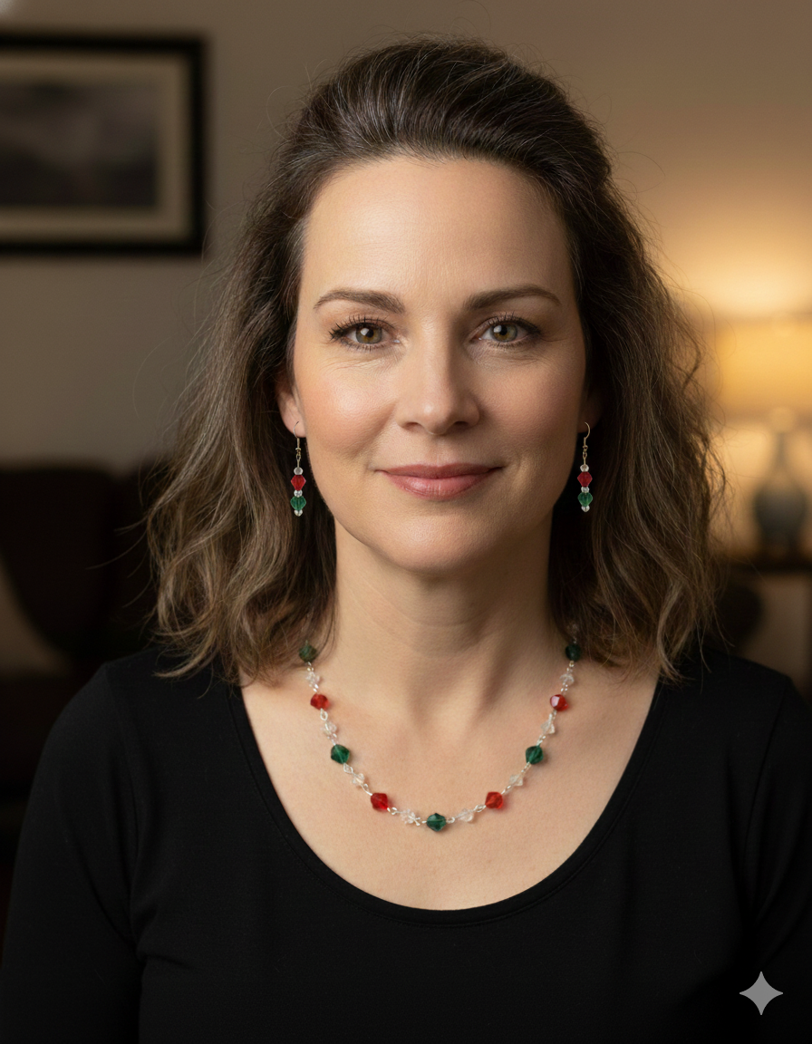 Featuring brilliant red, emerald green, and clear bicone beads, this handmade jewelry set is perfect for Christmas parties, Cinco de Mayo, gifting, or adding a touch of cheer to any outfit, any time of year.
