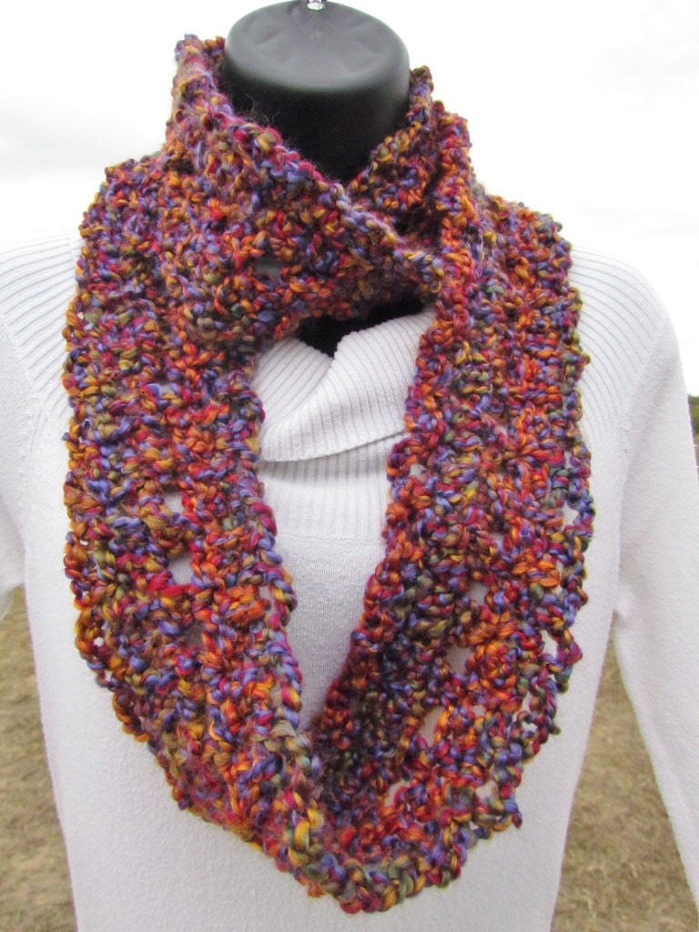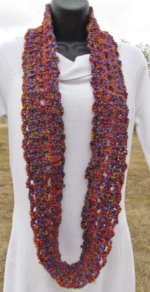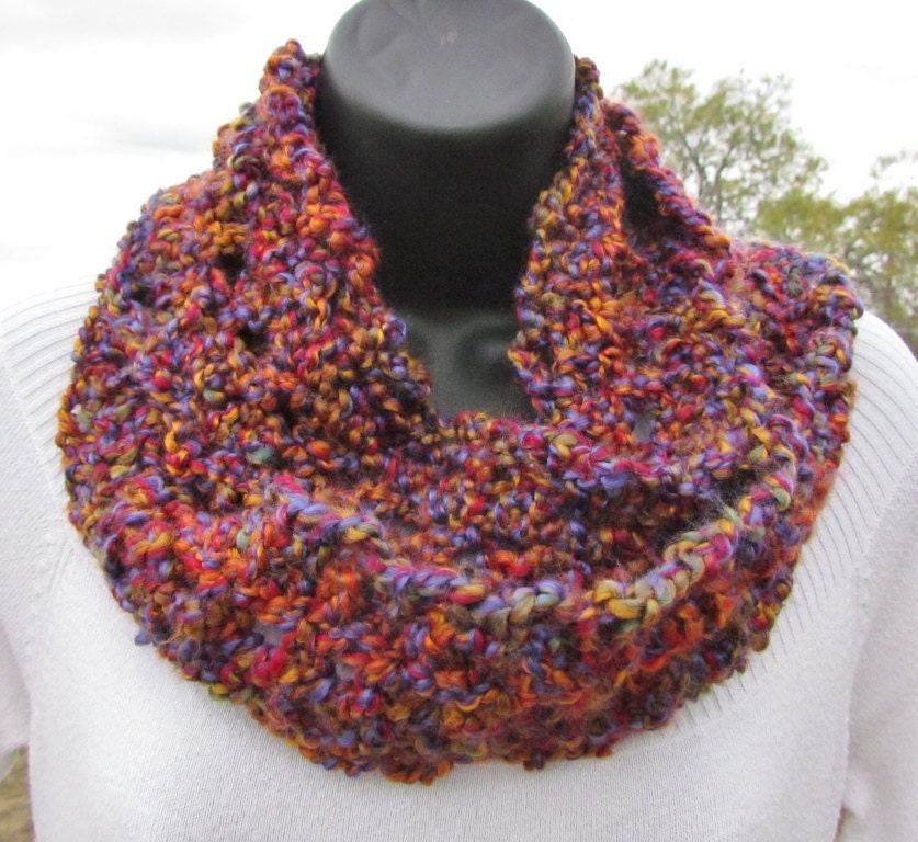 This is an original infinity scarf. I designed my own pattern and made it by hand with rare Lion Brand Homespun yarn. It's an extra special and unique find gift!