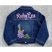 Welcome to my little shop! My name is Stephanie. I'm a wife to an incredibly supportive and wonderful husband and a stay-at-home mom to two daughters (2 and 6) and a son (8). I began my sewing/embroidery journey about 8 years ago with the help of my amazing, serial-hobbyist mom. I started out sewing and altering women's clothing for a couple of years. Soon after, I switched to making welding caps (my husband is a pipefitter). I then went on to embroidering ball caps, hoodies, and other outerwear for men. Eventually, I was overwhelmed with the need to make some pretty things. I bought a couple of denim jackets for my girls and they sat around for months until I finally decided on a starting point. I loaded up my machine and 3 hours later, I had the cutest Mama and Baby Unicorn full back embroidered denim jacket to give my daughter for her 5th birthday. She loved it. The look on her face and the way she wouldn't take it off and kept looking at her back in every mirror had me hooked. This was my thing. Designing denim jackets and hoodies as one-of-a-kind gifts for kids (and people in general) was what I wanted to do. I'm so grateful to be able to stay home and contribute to my family while also raising my babies.