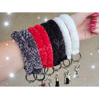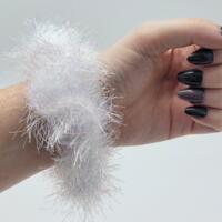 Hand crocheted with 100% polyester yarn that feels like velvet.