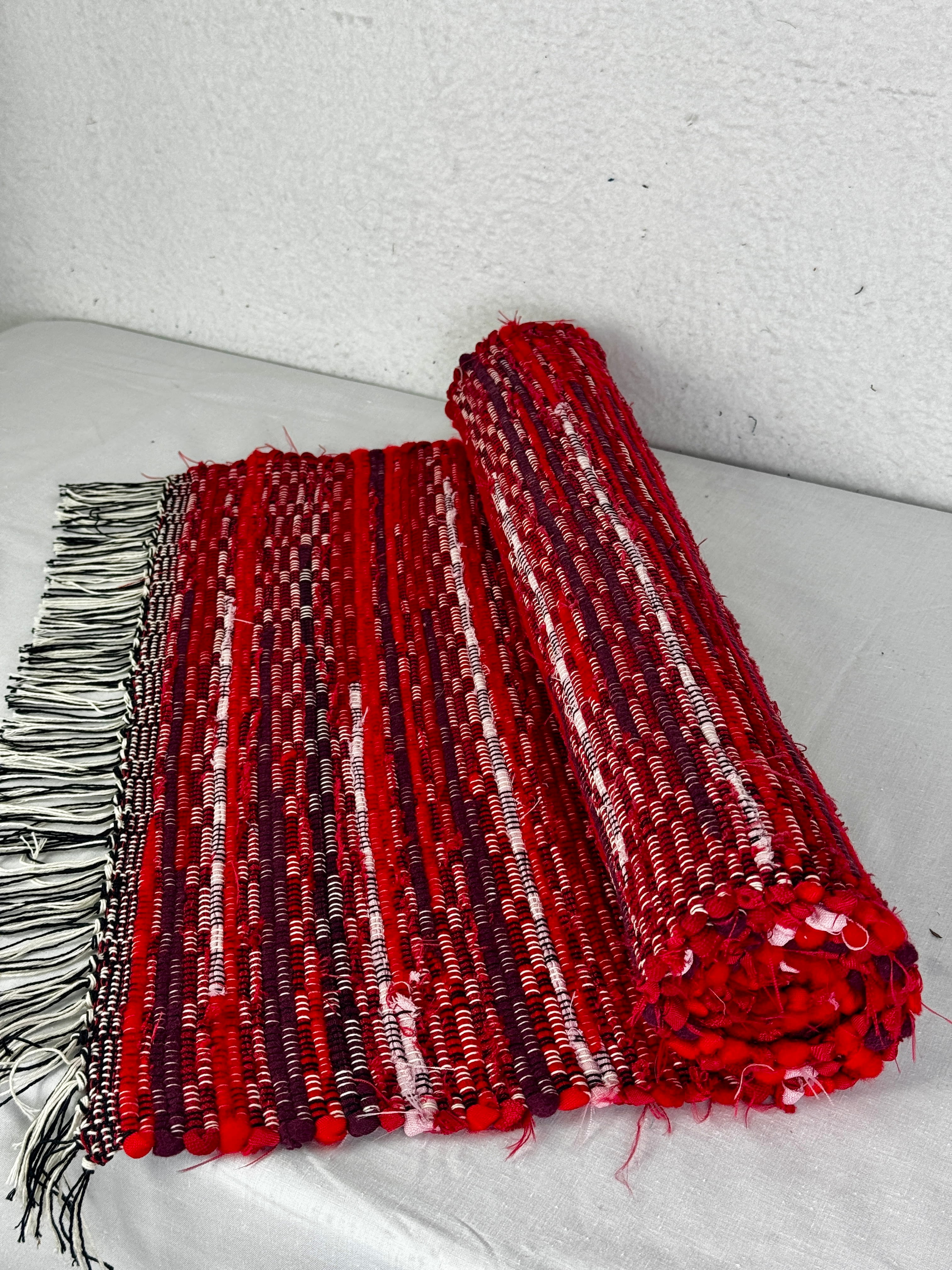 Red w/Pink Accents Handwoven Rag Rug 25" x 63"