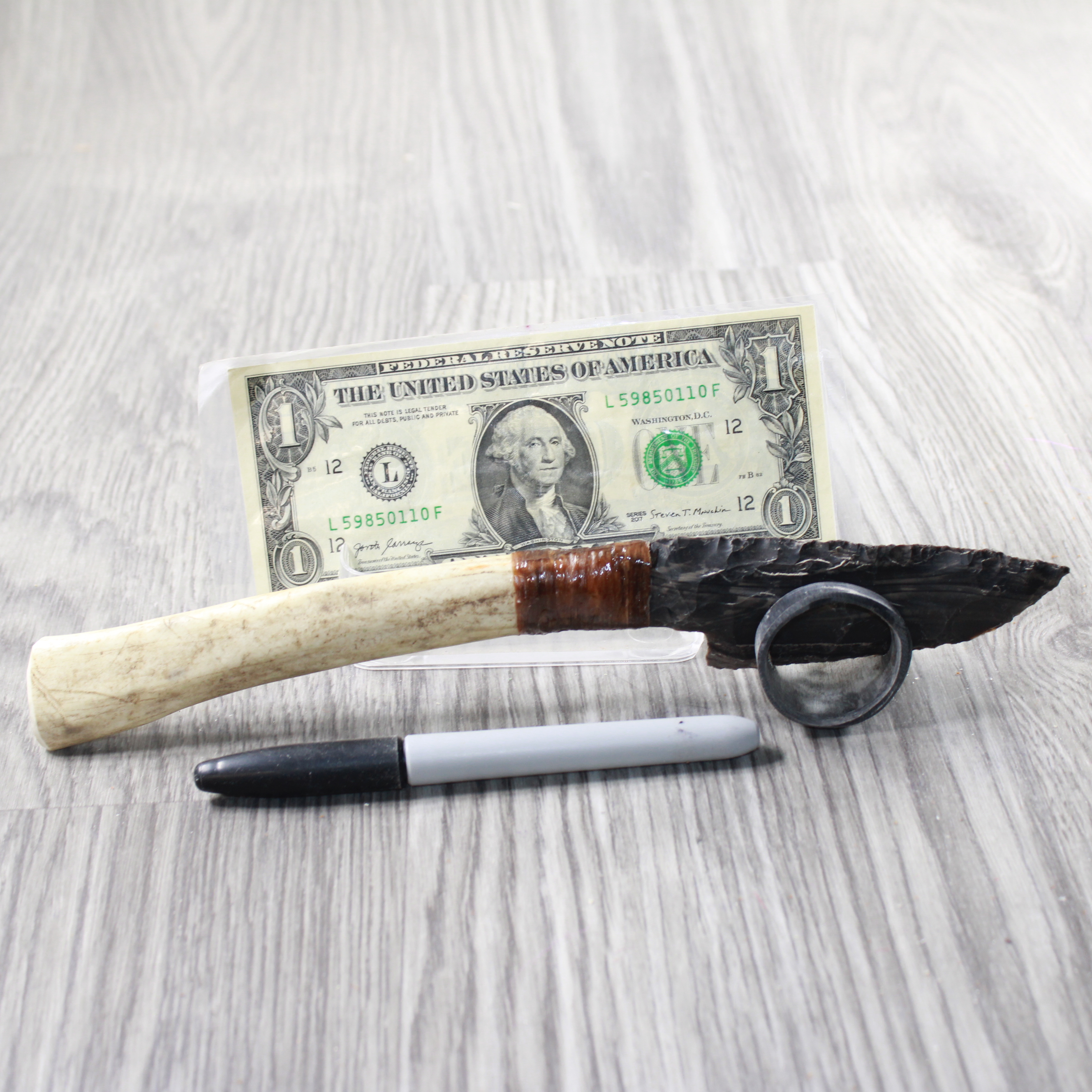 The handle is made from a reindeer antler.