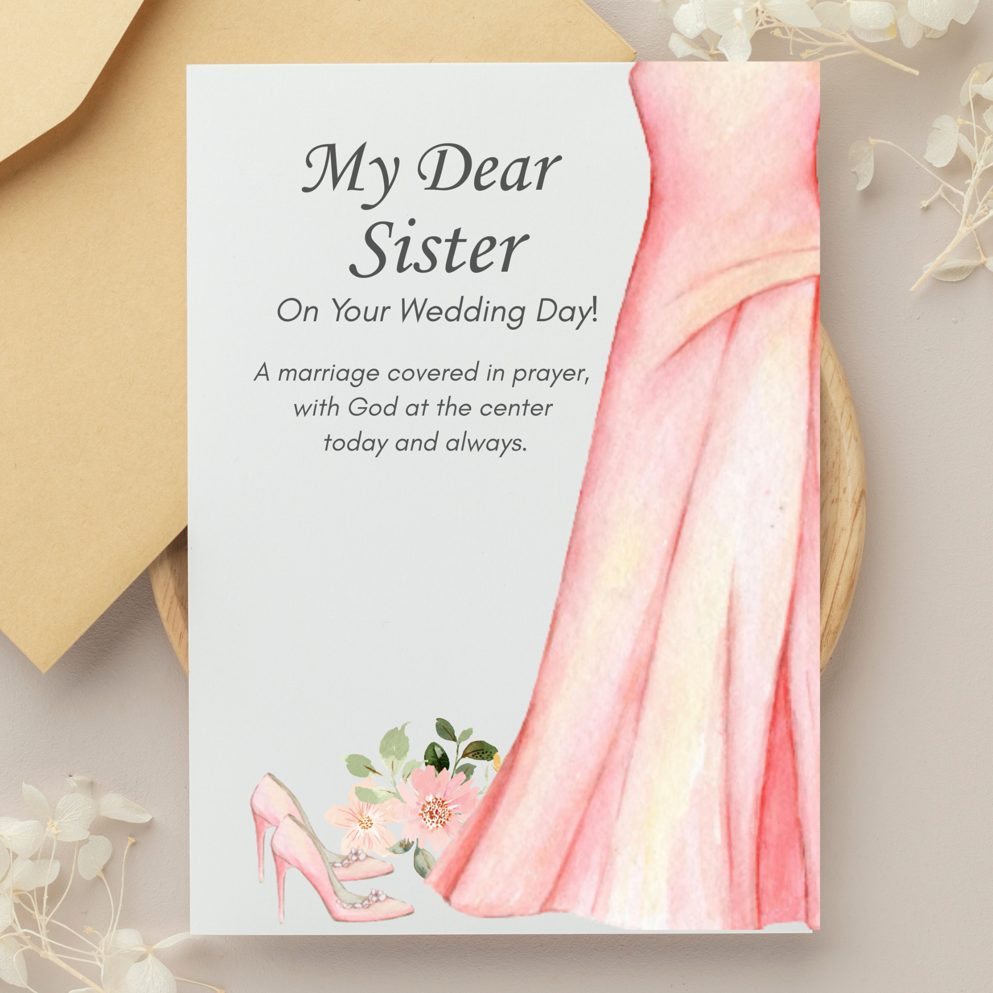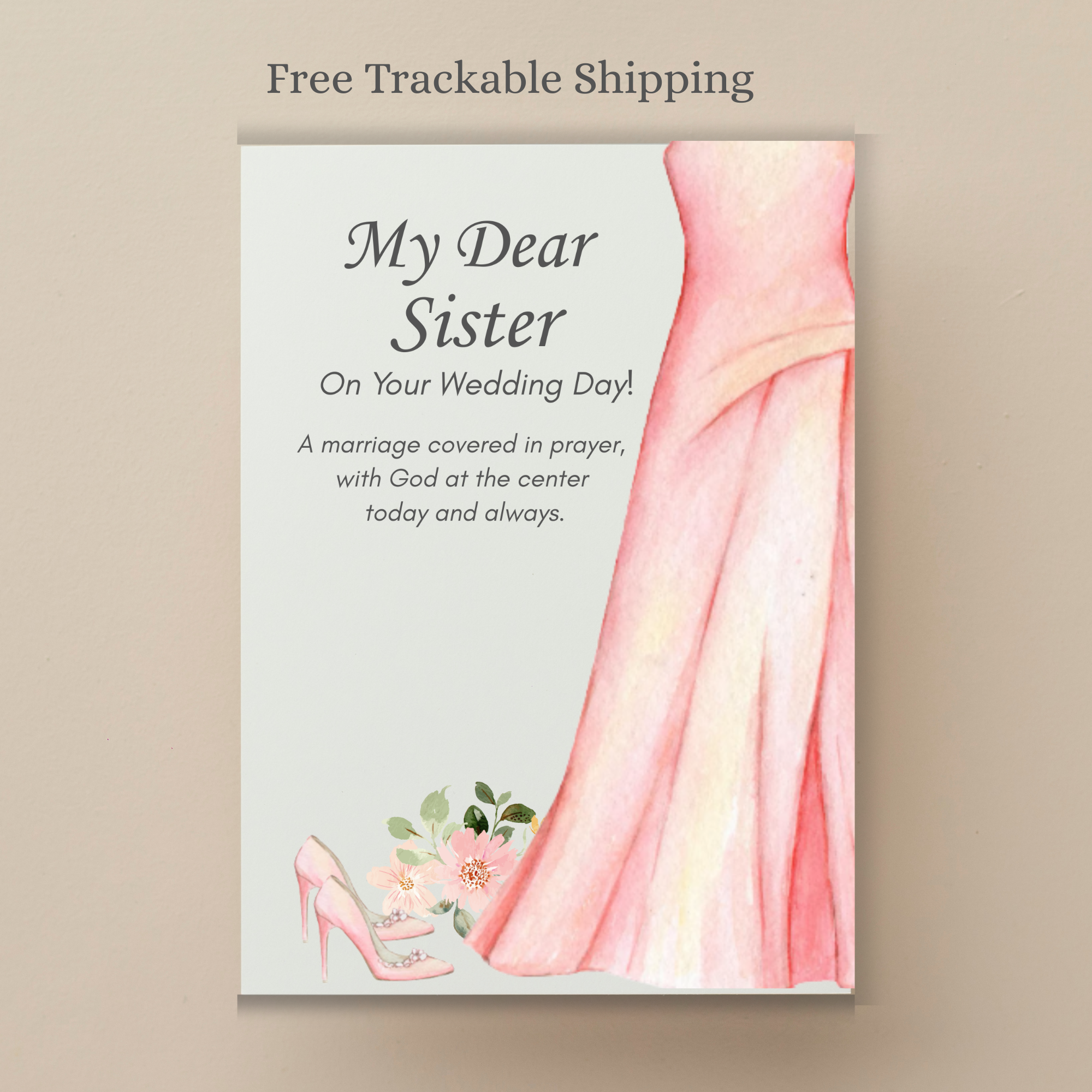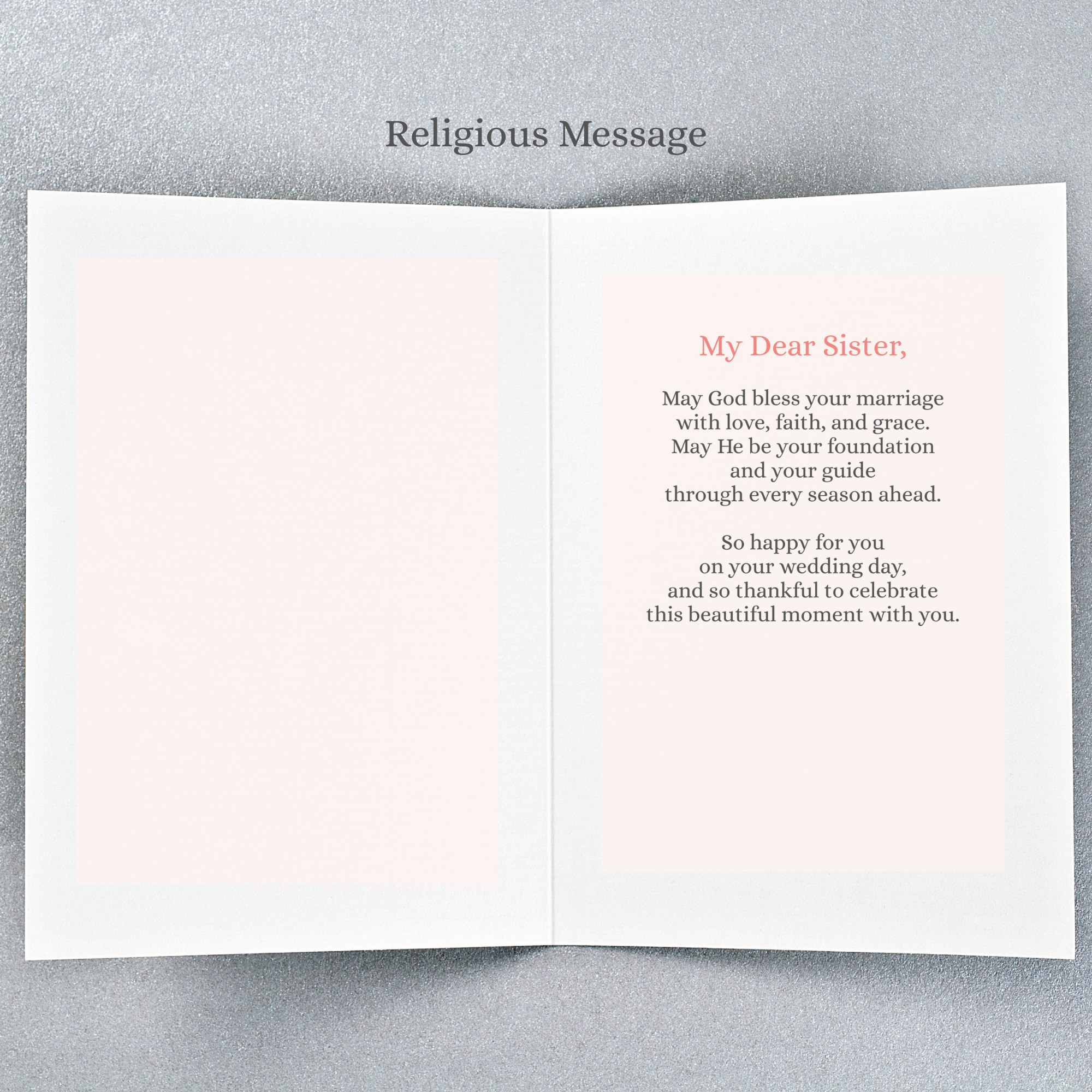Celebrate your sister's wedding day with a meaningful, faith-based keepsake card written from the heart.