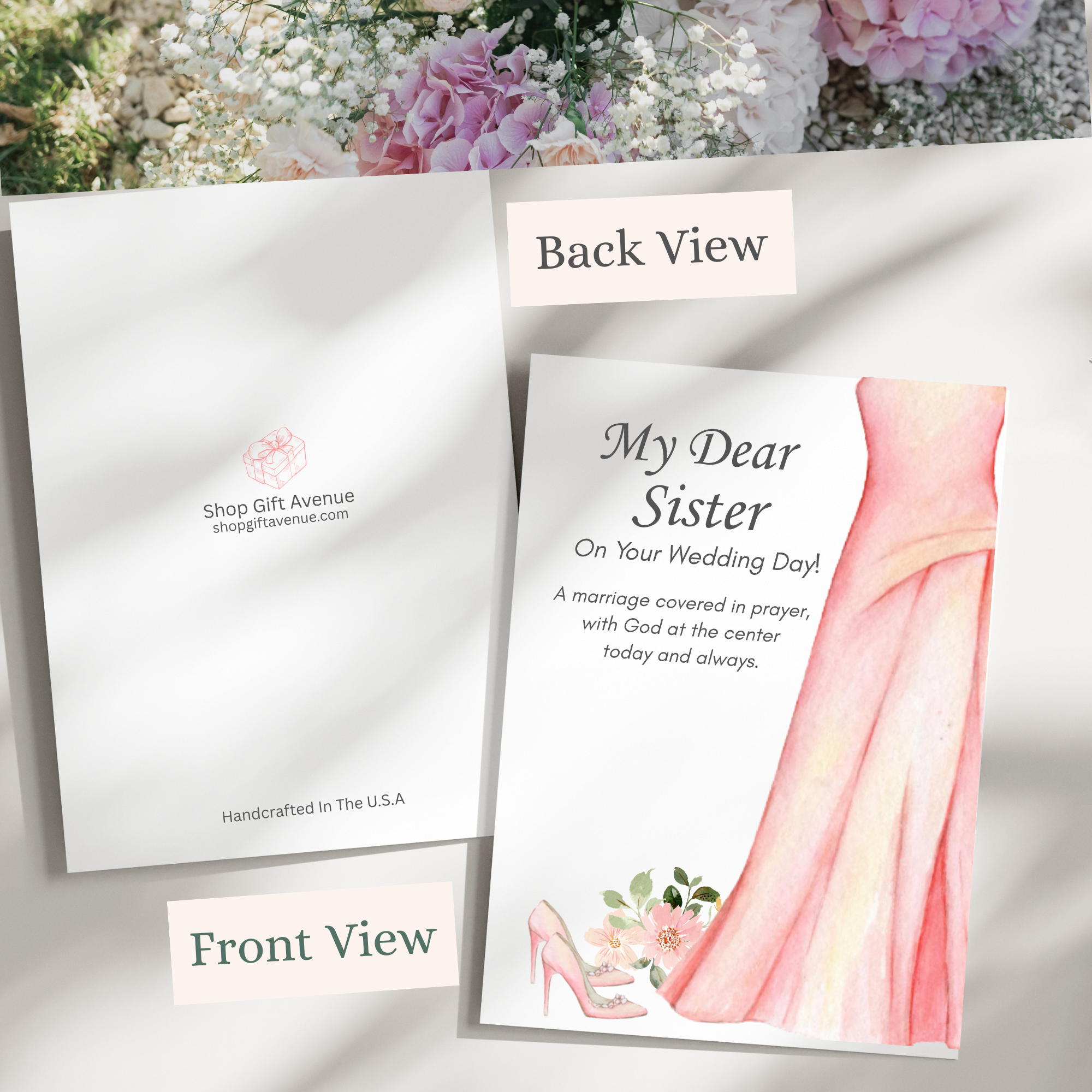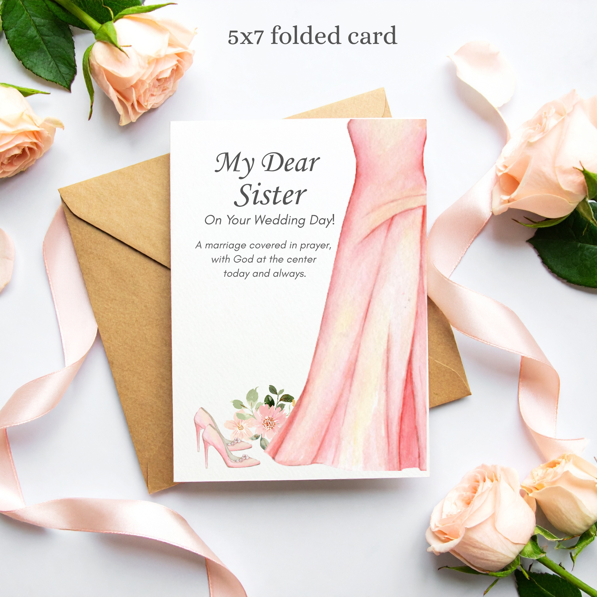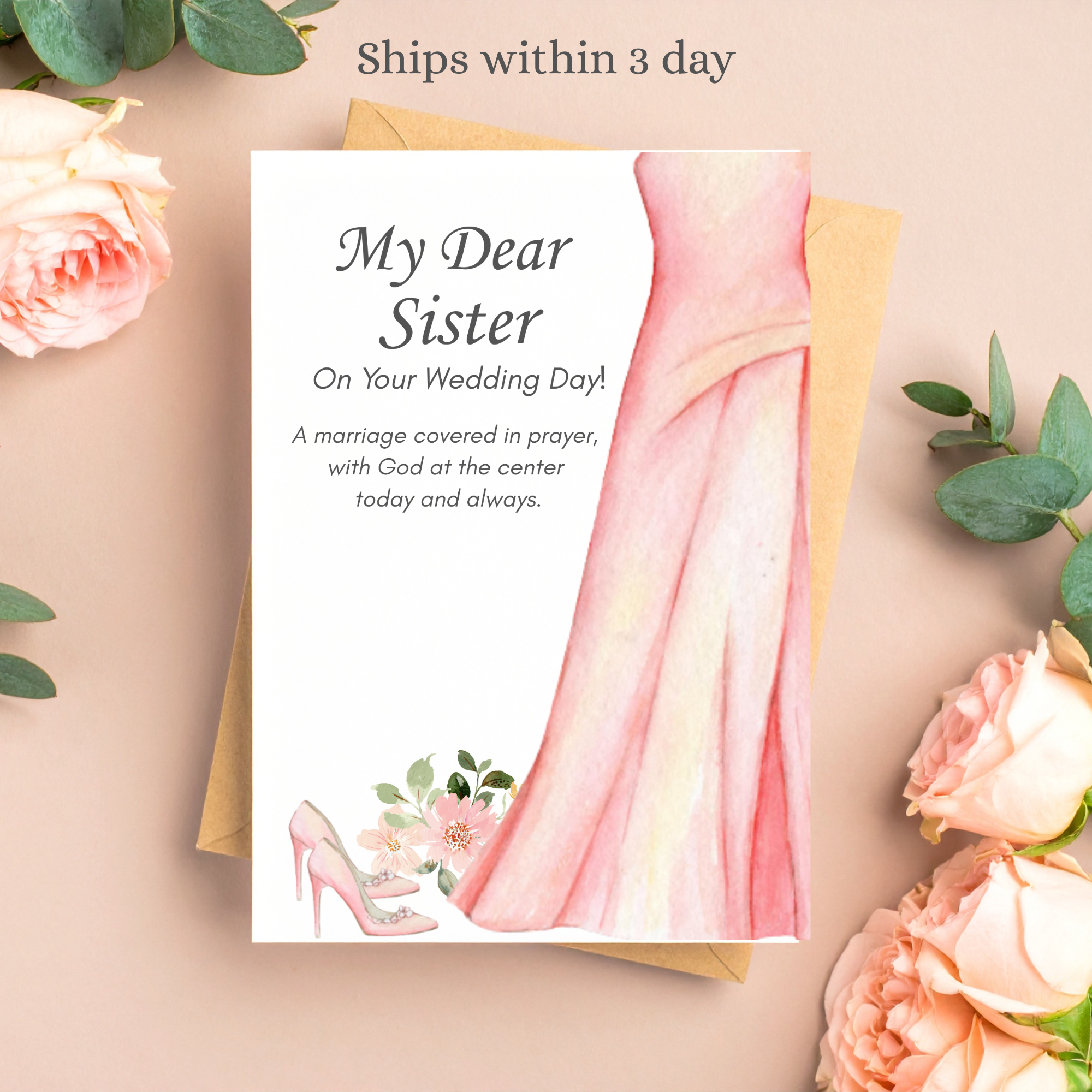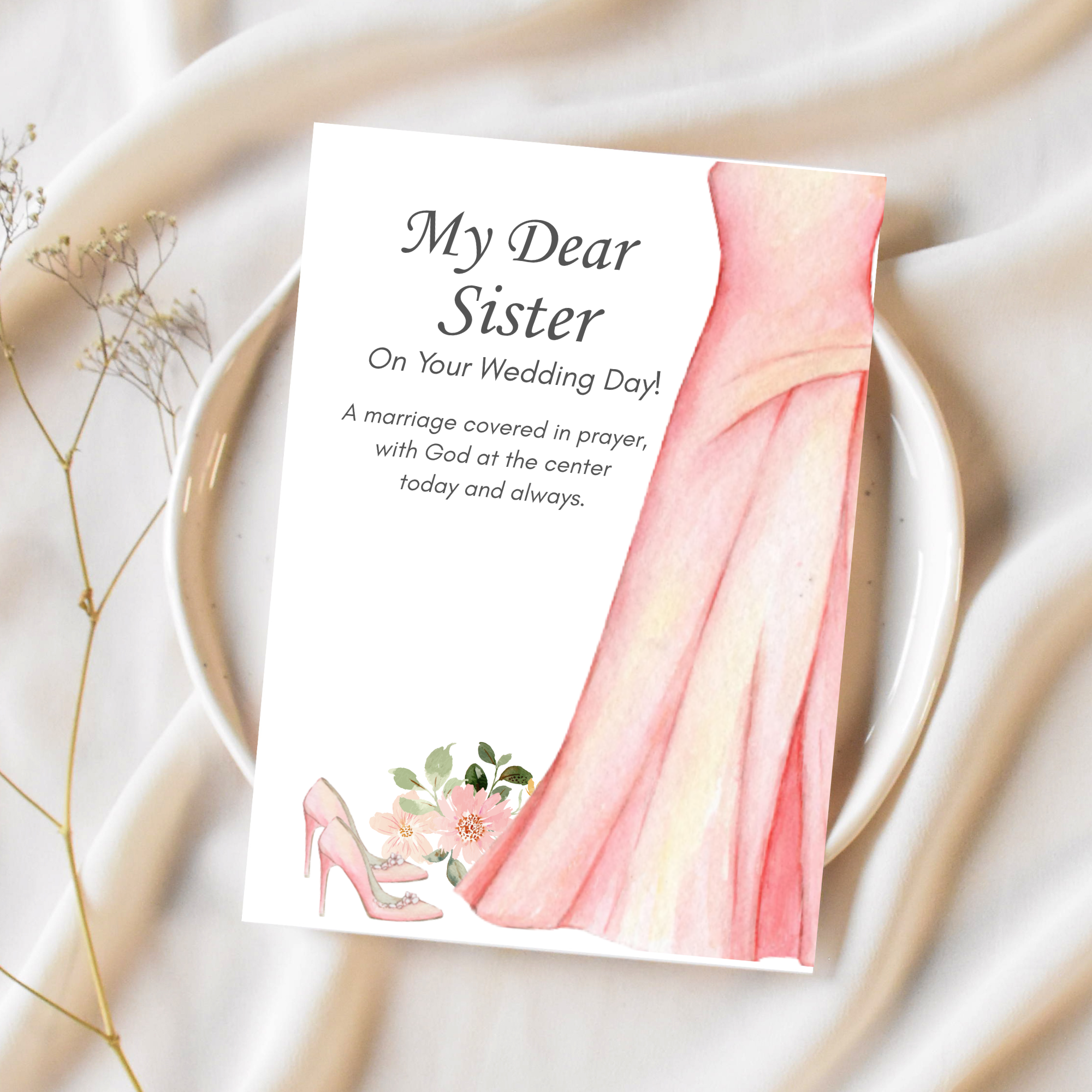 Celebrate your sister's wedding day with a meaningful, faith-based keepsake card written from the heart.