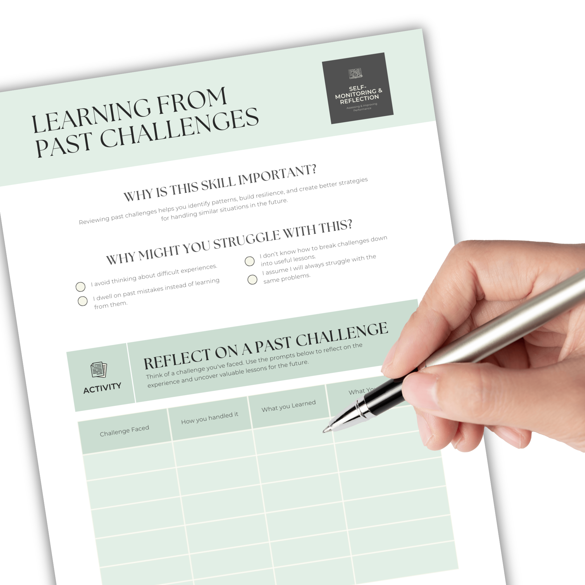 Learning from Past Challenges: Guided activity to identify patterns, lessons, and strategies from previous experiences.