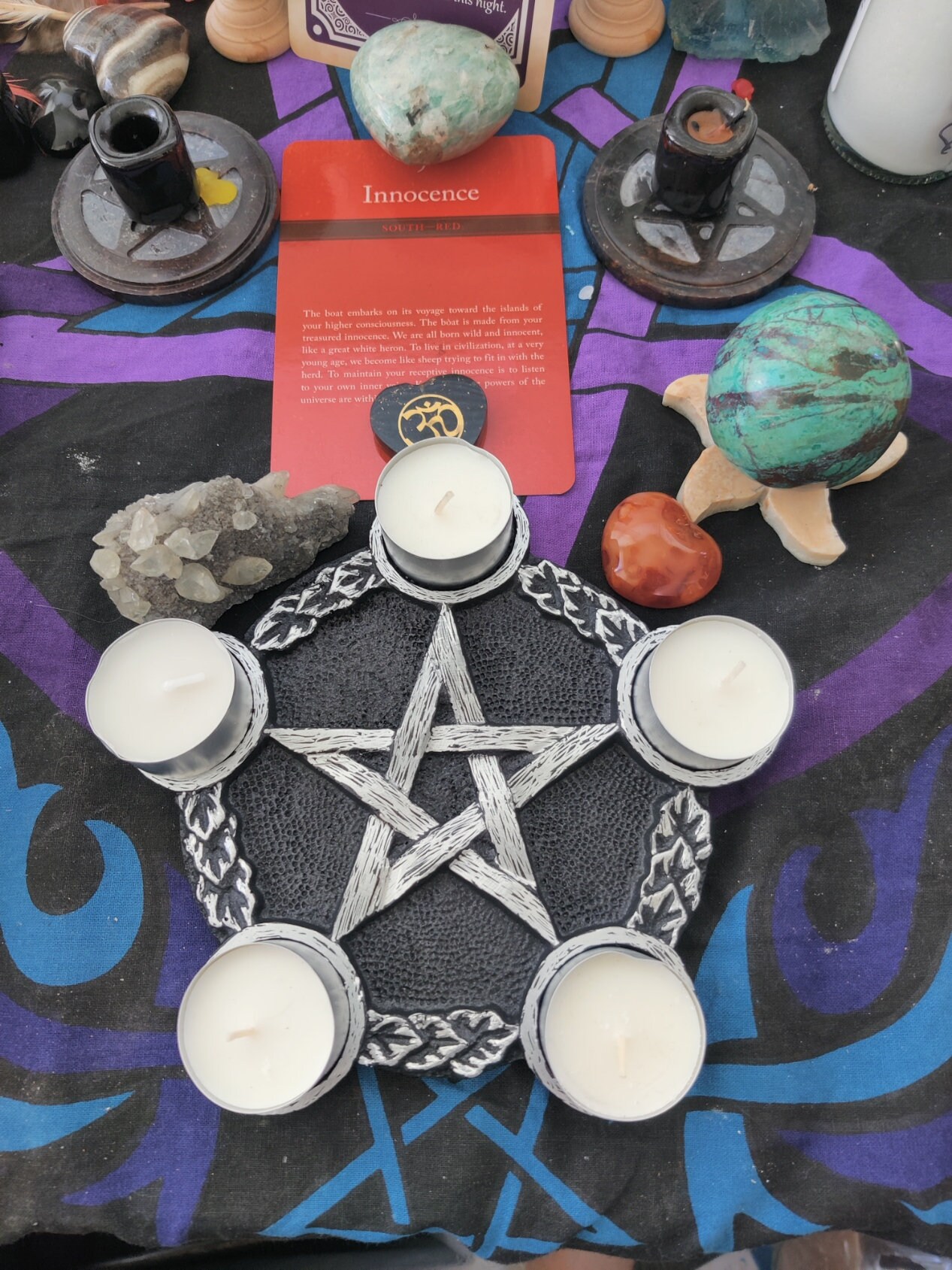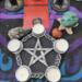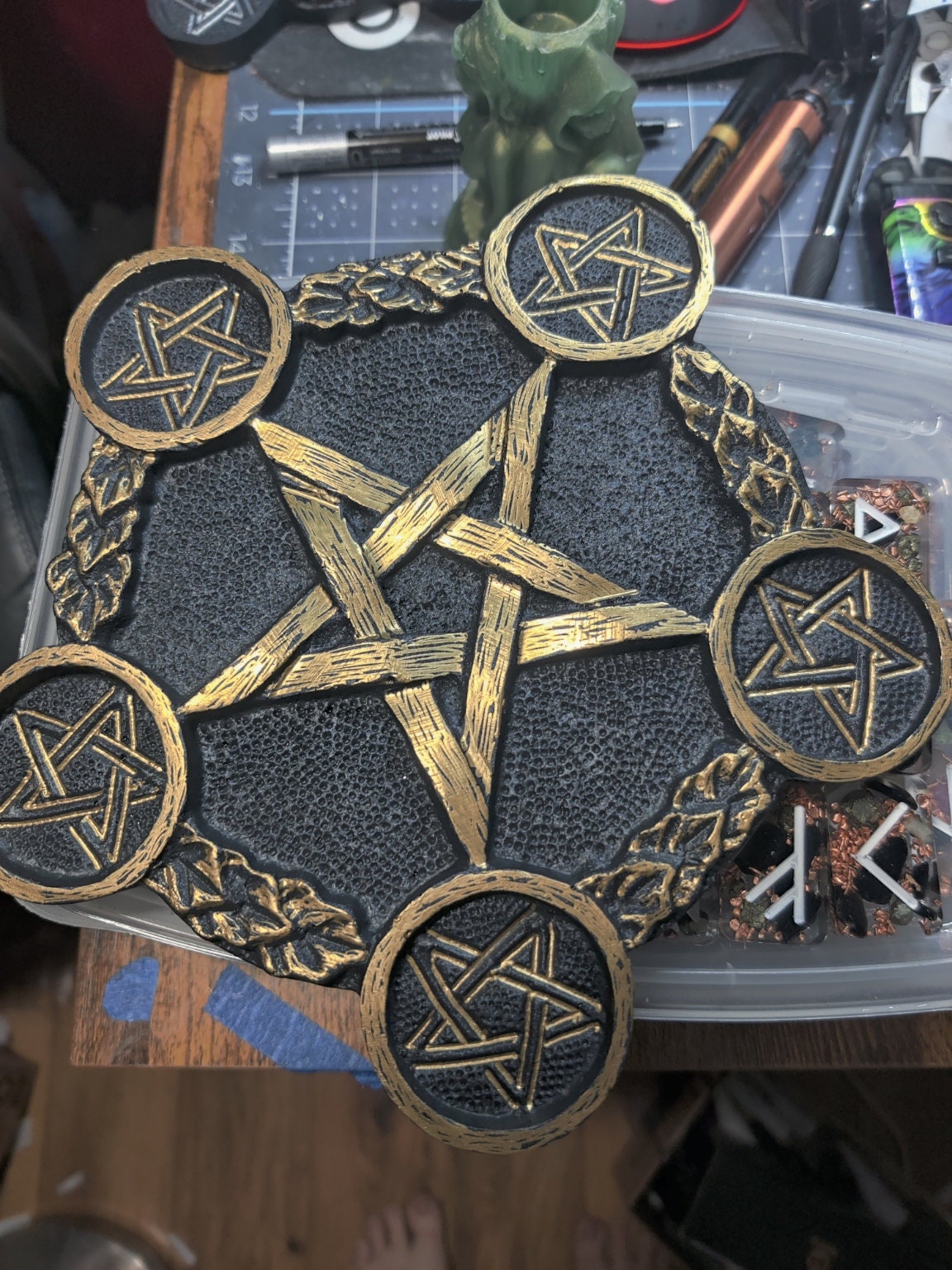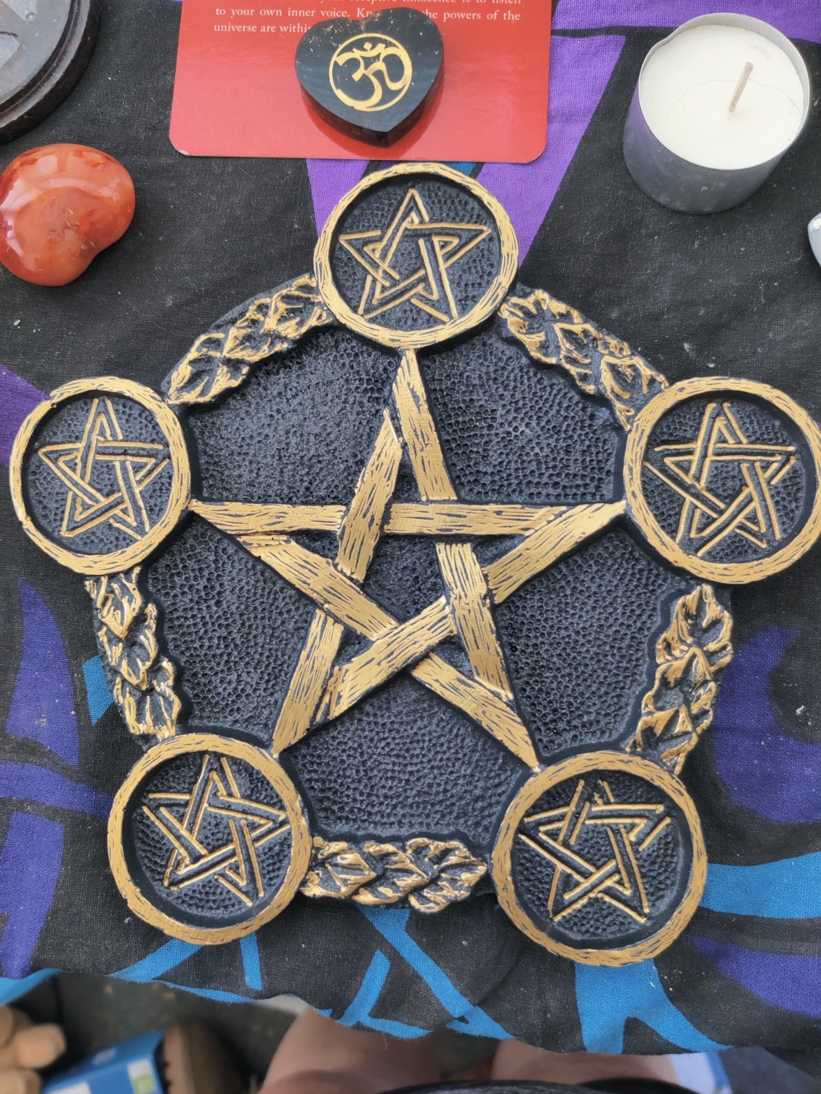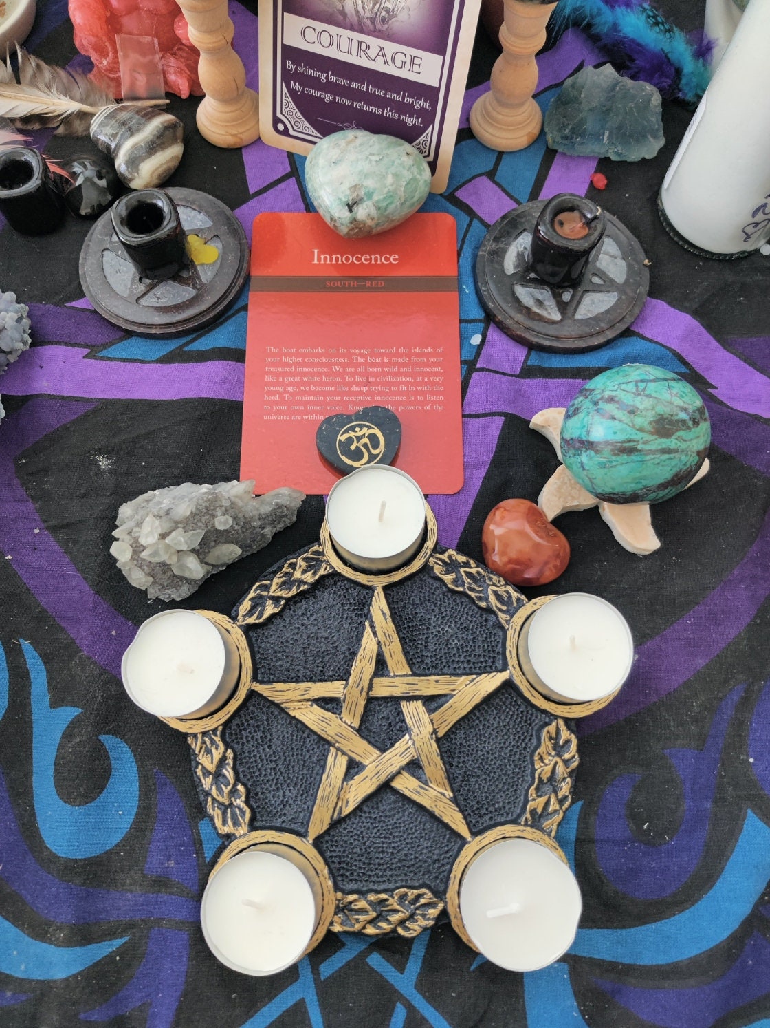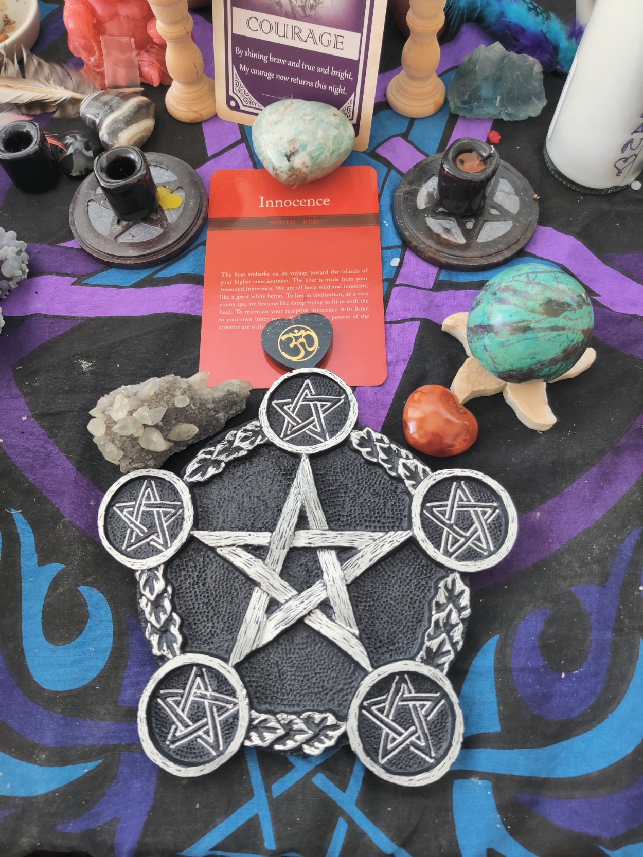 The resin tray is about 8" across, and comes with 5 tealight candles. I have listed Gold or Silver, but if you need a specific color for your alter, I can make this in any 2 colors you want. I am making myself one for each season. There is no extra charge for making it your own colors.... just shoot me a message. I love working with you.. always!