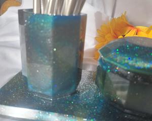 I bring to you beautiful ring holder flowers! Of course they are made with resin and lots of glittery goodness. These flowers feature a ring cone in the center with a nice flower around it. It holds not just a few rings, but you can put a necklace, bracelet, earrings in there too. It's the perfect size for the night stand or dresser. It would be super cute in any room as just decor as well. I was very excited to make these because I have so many knuckle rings so I now have a bunch of these in my room. Multifunctional for all jewelry and cute as a display as well. Bring one home now to proudly display your collection of rings, necklaces, bracelets, whatever you want to put in there. It's all up to you. I currently have 5 available but making more daily.