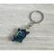 This keychain was made by mixing different colors into resin, and then pouring them together to make the swirl pattern. After curing and being demolded, the mask is hand painted. The piece is then drilled and keychain hardware added.
