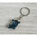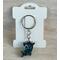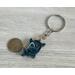 This resin keychain features a shark in swirls of blue with a red and white scuba mask. It hangs on silver hardware, and attaches to keys, bags, and more.