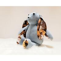 Our retirement keepsake bunnies make a special gift for family members who have supported military members throughout their career as they prepare to embark on a new chapter. We will use 2 military blouses (of contrasting patterns) of your loved one to create a handmade stuffed bunny that measures approx. 8" wide x 17" tall from head to toe.