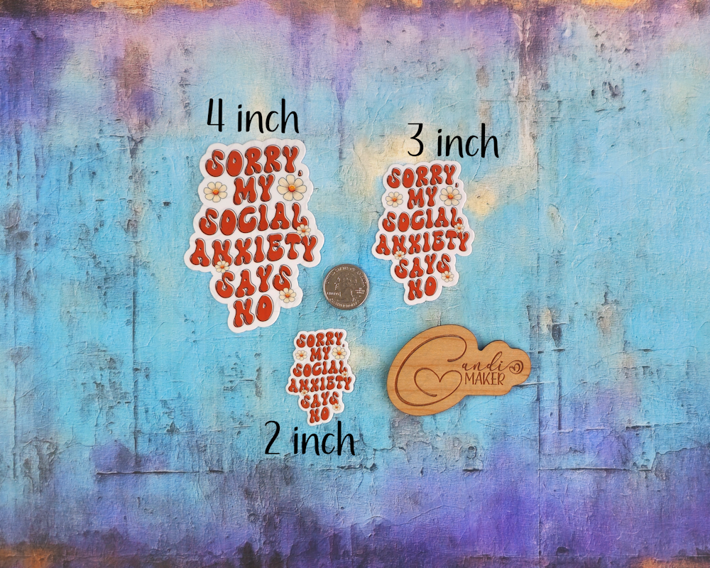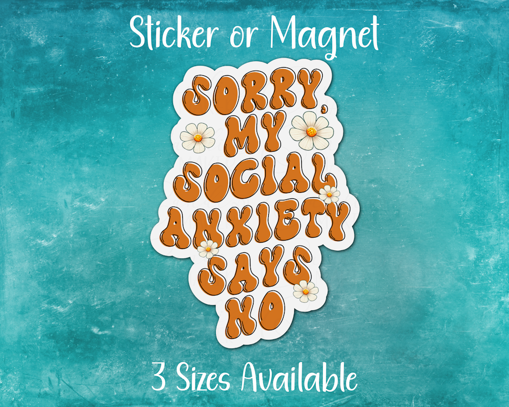Retro Floral Mental Health Humor Sticker or Magnet | Sorry My Social Anxiety Says No