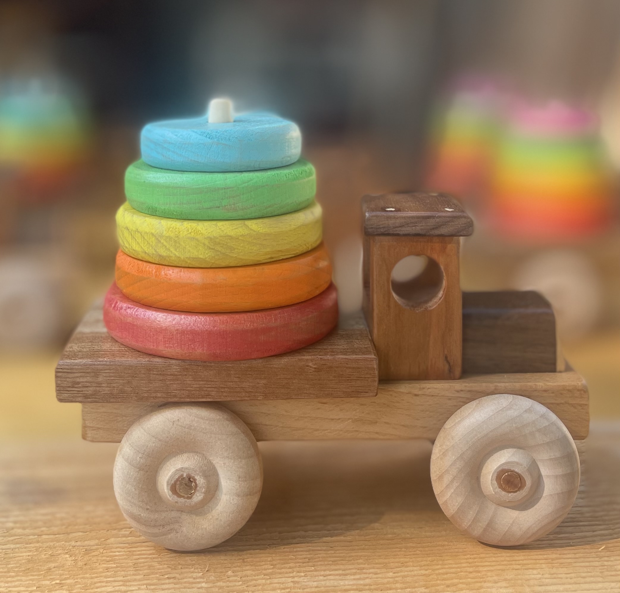 this wooden ring truck is made by hand whit tradicional tools is made whit diferents types oof wood like walnut cherry, mesquite & beech wood