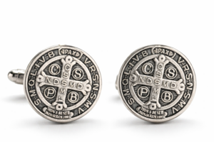 Handmade St. Benedict Medal Cufflinks for Men – Catholic Silv...