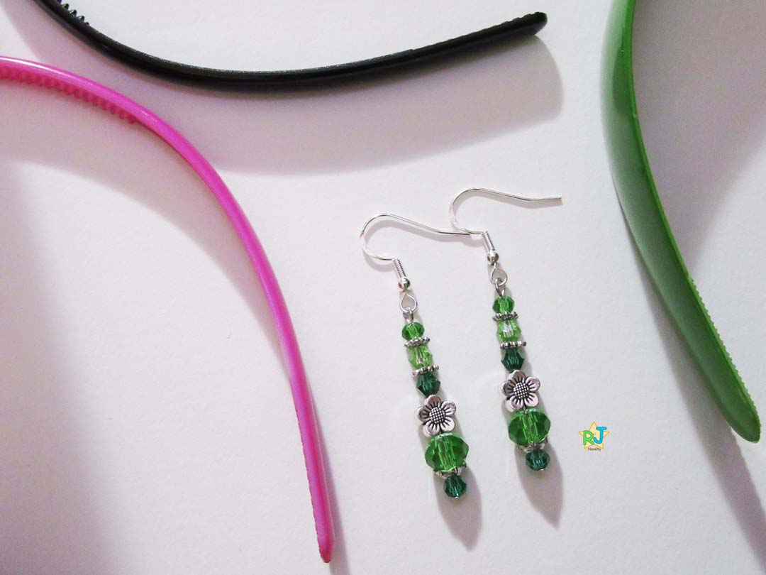 With Silver Flower Bead, Green & Grass Green & Light Green & Emerald Color Crystals Stones & 3 Different Style Silver Beads.