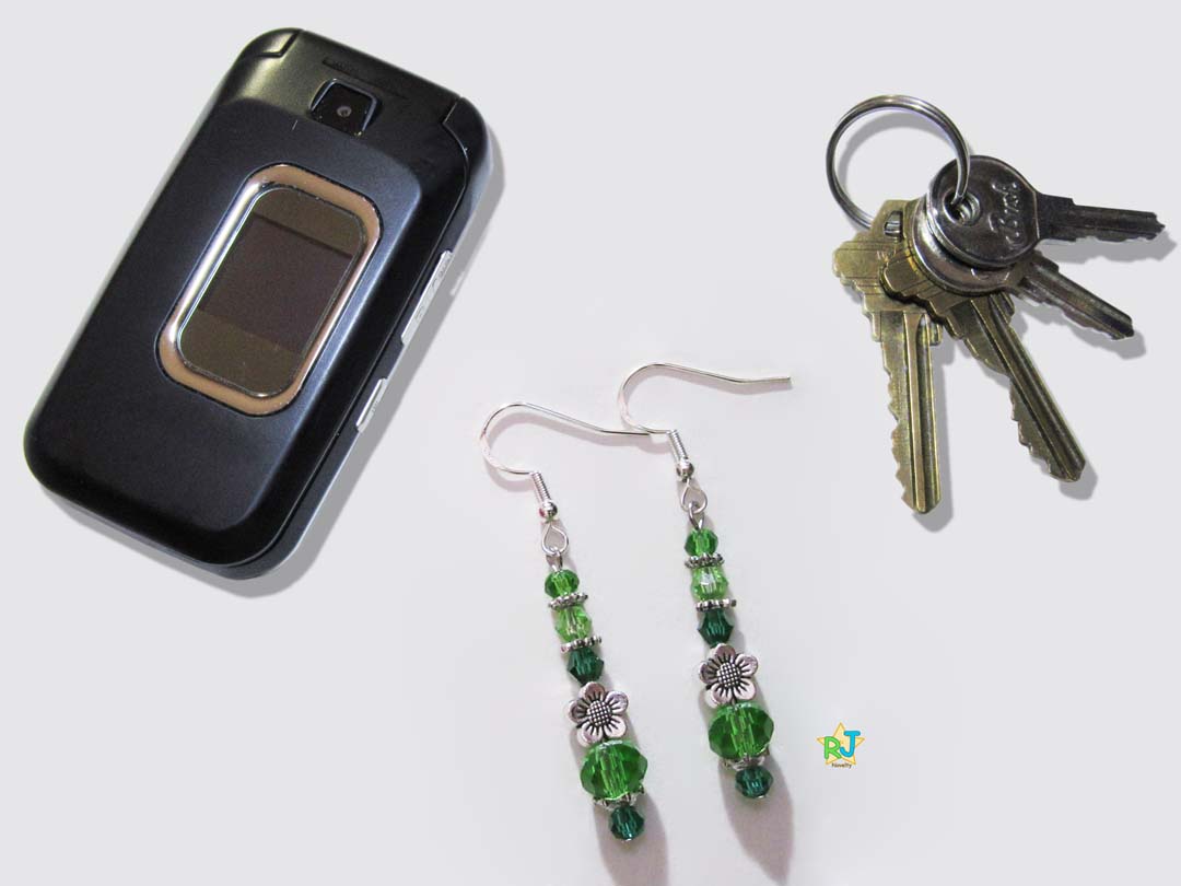 Materials: Silver Flower Bead, Green & Grass Green & Light Green & Emerald Color Crystals Stones & 3 Different Style Silver Beads.