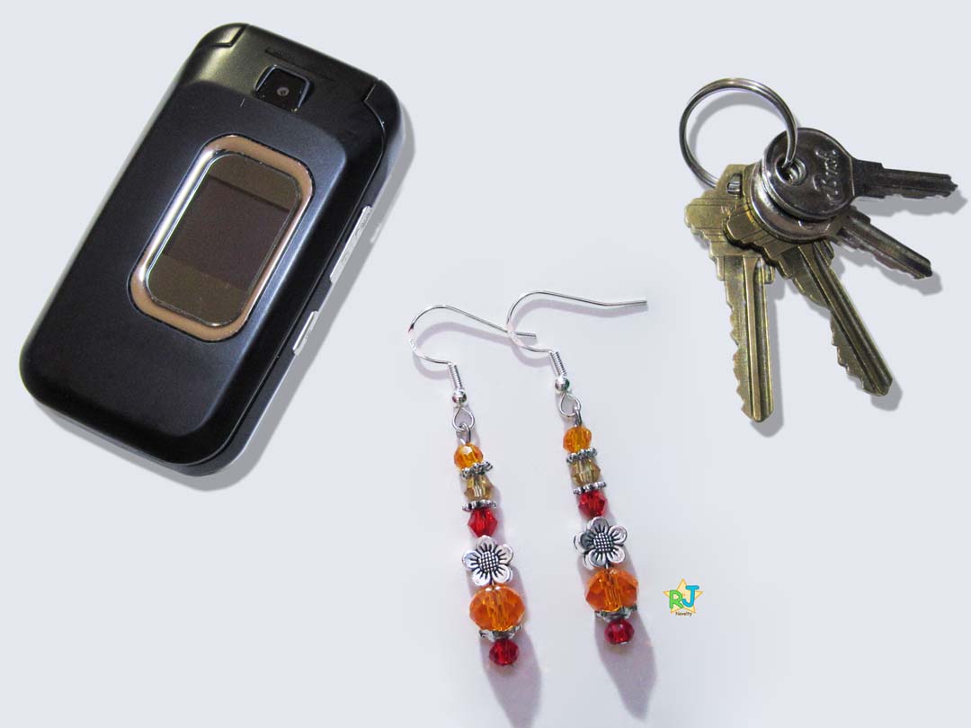 Materials: Silver Flower Bead, Orange & Light Orange & Light Taupe & Ruby Color Crystals Stones & 3 Different Style Silver Beads