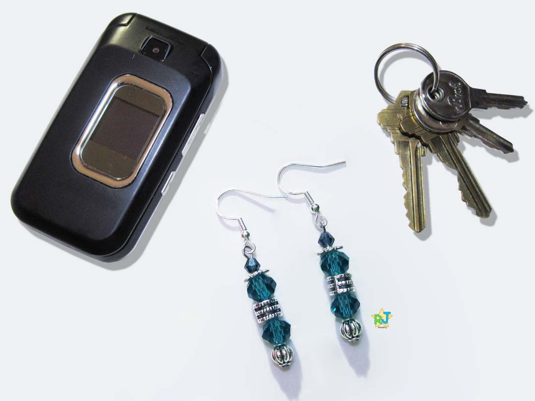 With Dark Aqua & Dark Navy Blue Crystals Stones & 3 Different Style Silver Decor Beads.